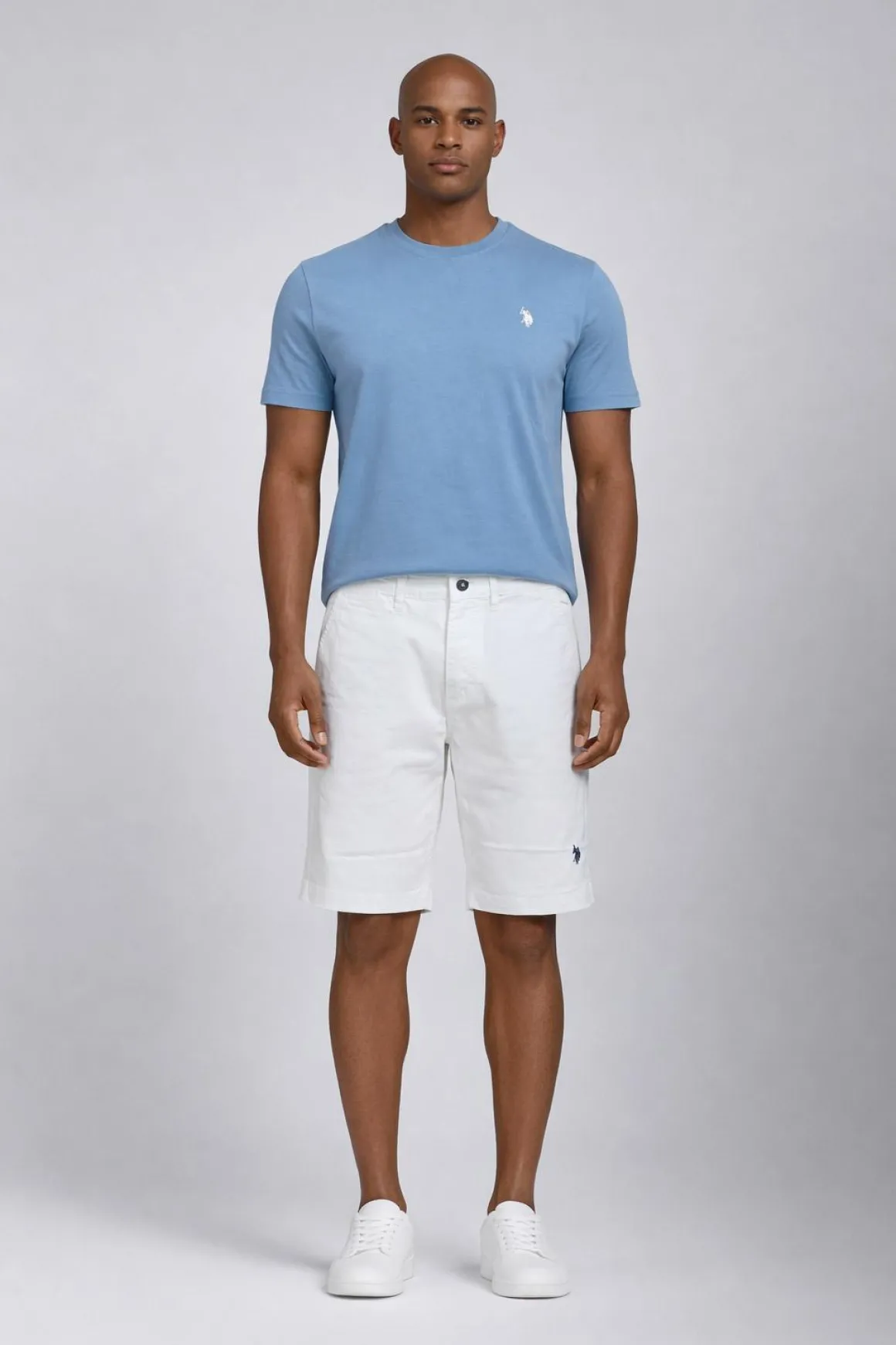 Bermuda U.S. Polo Assn. da uomo realizzati in leggero raso di cotone stretch. Il modello presenta logo ricamato sul fondo, chiusura con zip e tasche America ai fianchi. Completano il design le tasche posteriori con pattina e bottone e la vestibilità regolare che assicura comfort e stile casual.