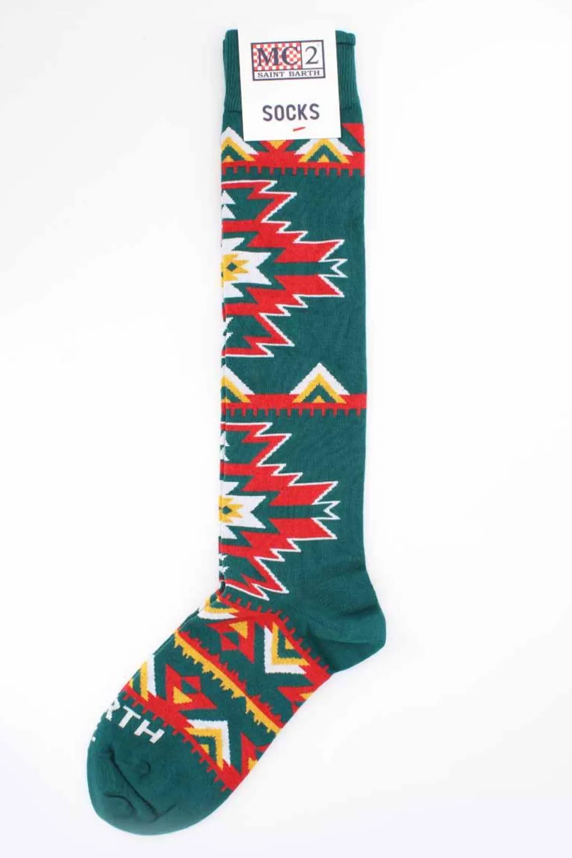 Simpaticissime calze lunghe a fantasia firmate Saint Barth MC2, realizzate in caldo cotone completano il look in maniera simpatica ed esclusiva, misura unica, 78% cotone 20% poliammide 2% elastan.