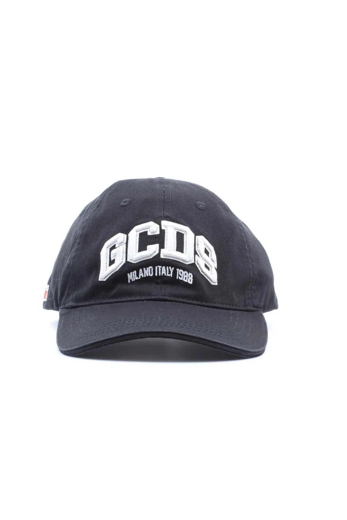 Cappello baseball GCDS in cotone con logo lettering frontale e visiera curva, modello regolabile dal design essenziale e contemporaneo.