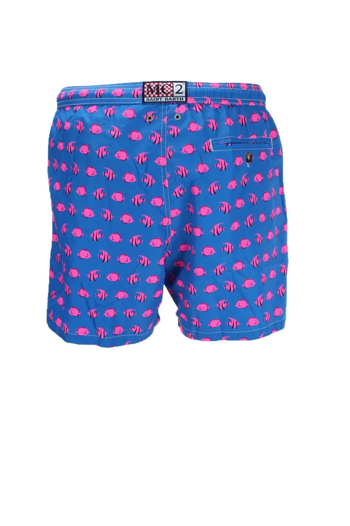 Costume mare uomo realizzato in tessuto microfibra leggera ad asciugatura rapida, lunghezza media con slip interno ergonomico, elastico in vita con laccio coulisse, tasche a filo ai fianchi e posteriore con bottone, taschino portaspiccioli anteriore, logo Saint Barth applicato. I materiali usati sono 100% riciclati ed ecosostenibili, insieme al capo viene consegnata una linguetta di riconoscimento bagagli personalizzata MC2 Saint Barth. Vestibilità regolare, acquista la tua solita taglia.