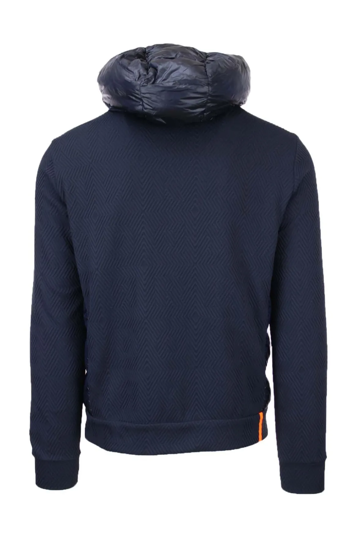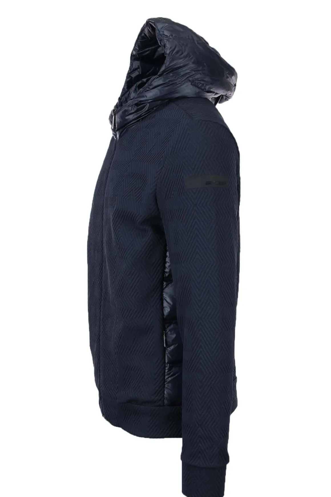 Felpa uomo cardigan zip con cappuccio impreziosita dal tessuto stretch a motivo Razzle Dazzle, disegno geometrico monogramma a rilievo in tutto il tessuto, chiusura con zip, cappuccio fisso e pannelli laterali in nylon imbottiti, fit regolare. Un capo unico e di grande effetto dona un tocco di originalità a qualsiasi look, abbinalo con il suo pantalone dedicato, cercalo nella sezione pantaloni RRD.