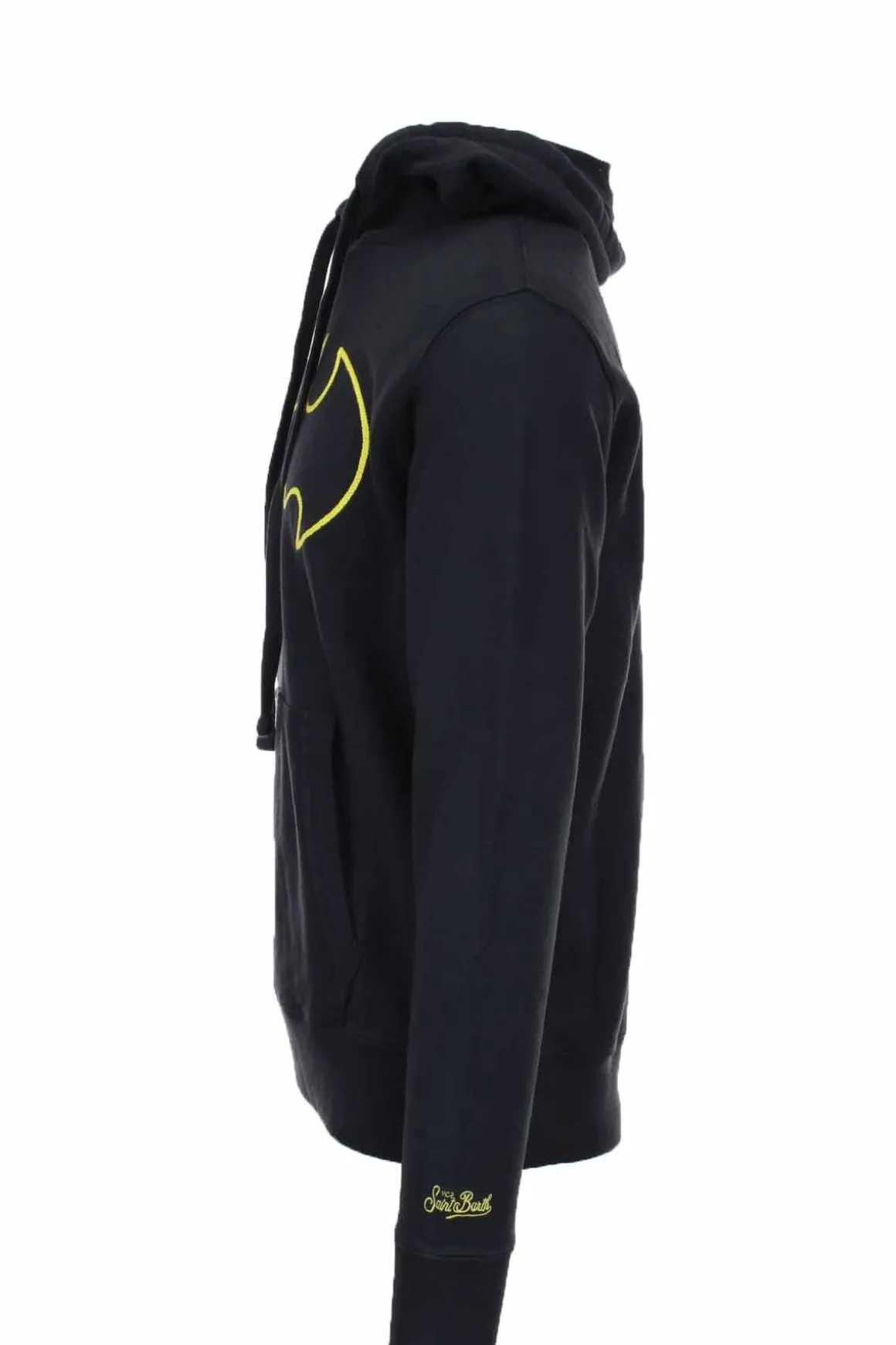 Comodissima felpa in cotone con cappuccio, disegno Batman, tasche a marsupio anteriori, logo saint barth ricamato sul polso, polsini e fondo vita in costina stretch, laccio coulisse nel cappuccio, vestibilità regular, 100% cotone.