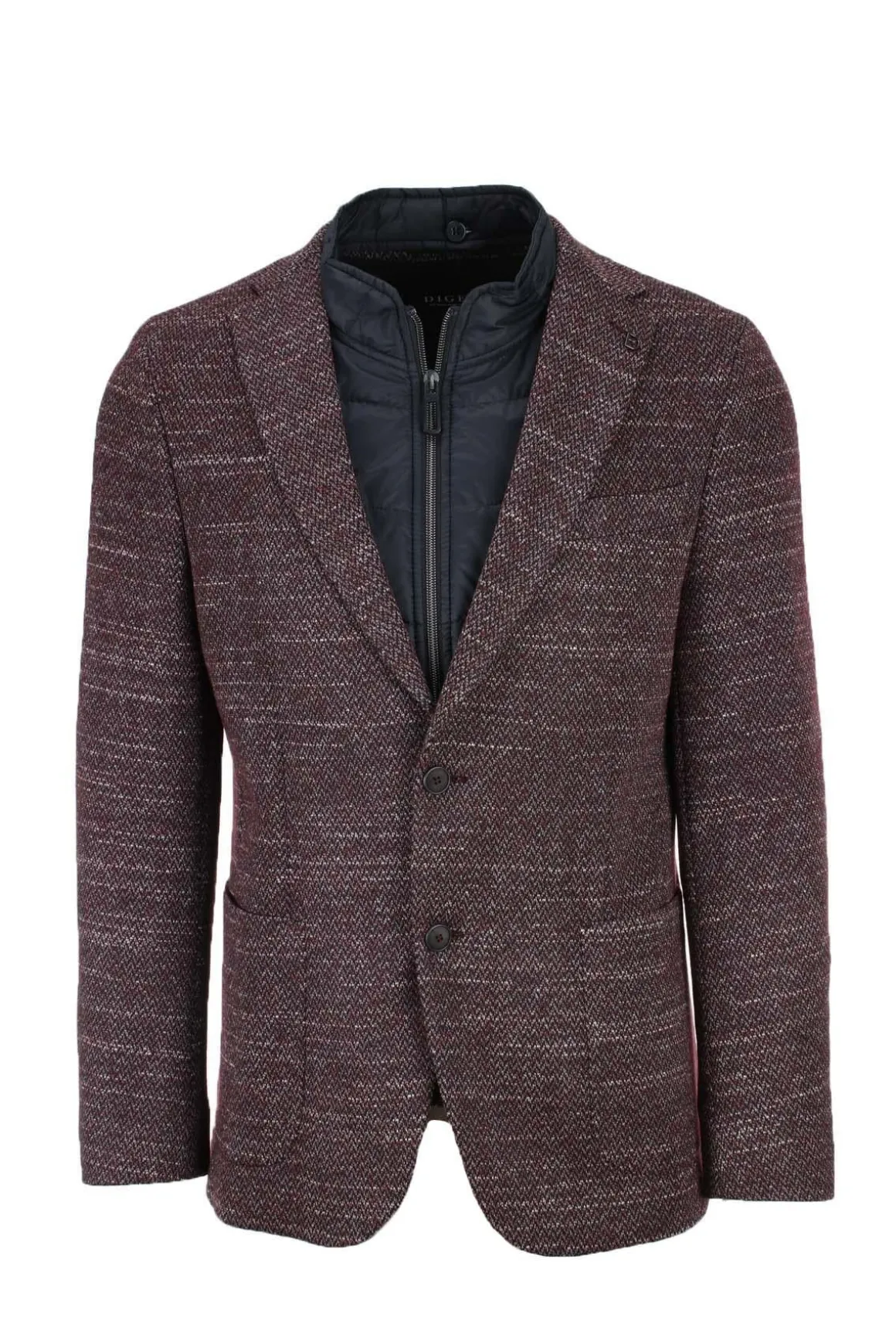 Giacca con pettorina rimovibile, realizzata in morbido tessuto stretch micro fantasia, tasche esterne, interno foderato con tasche, spacchetti laterali, vestibilità confortevole regolare, tessuto 28% poliestere, 24% cotone, 24% viscosa, 16% lana, 6% poliamide, 2% elastan.