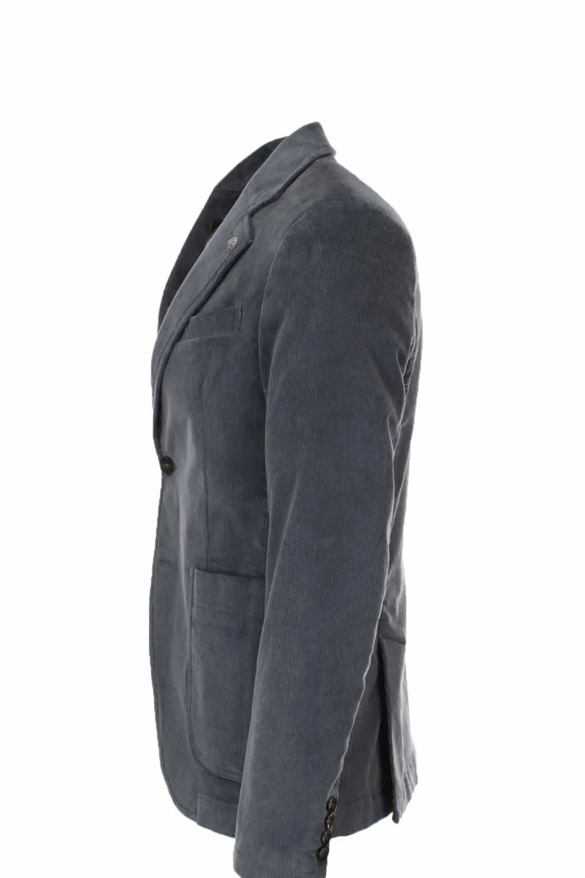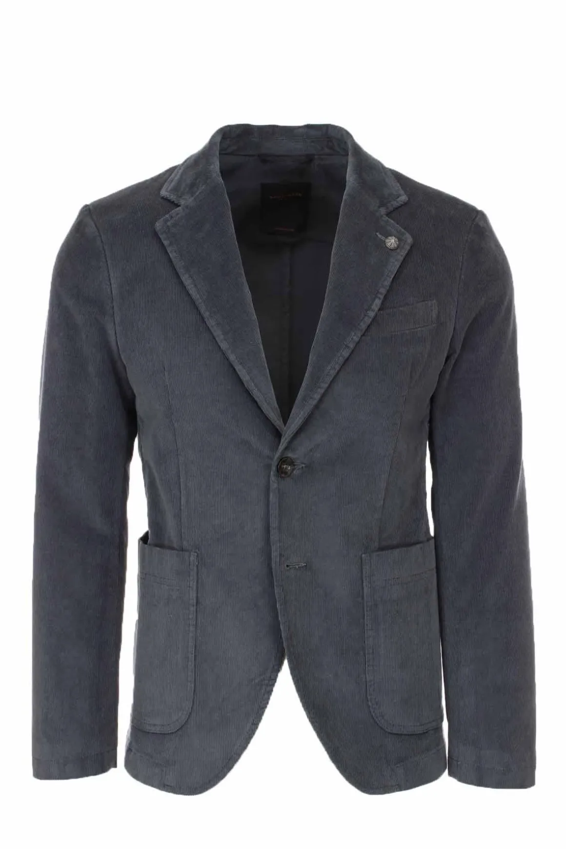 Giacca sfoderata in velluto a coste elasticizzato, 1000 righe, 2 bottoni, spacchi laterali, tasche a toppa, vestibilità impeccabile grazie al velluto stretch, 98% cotone, 2% elastan.