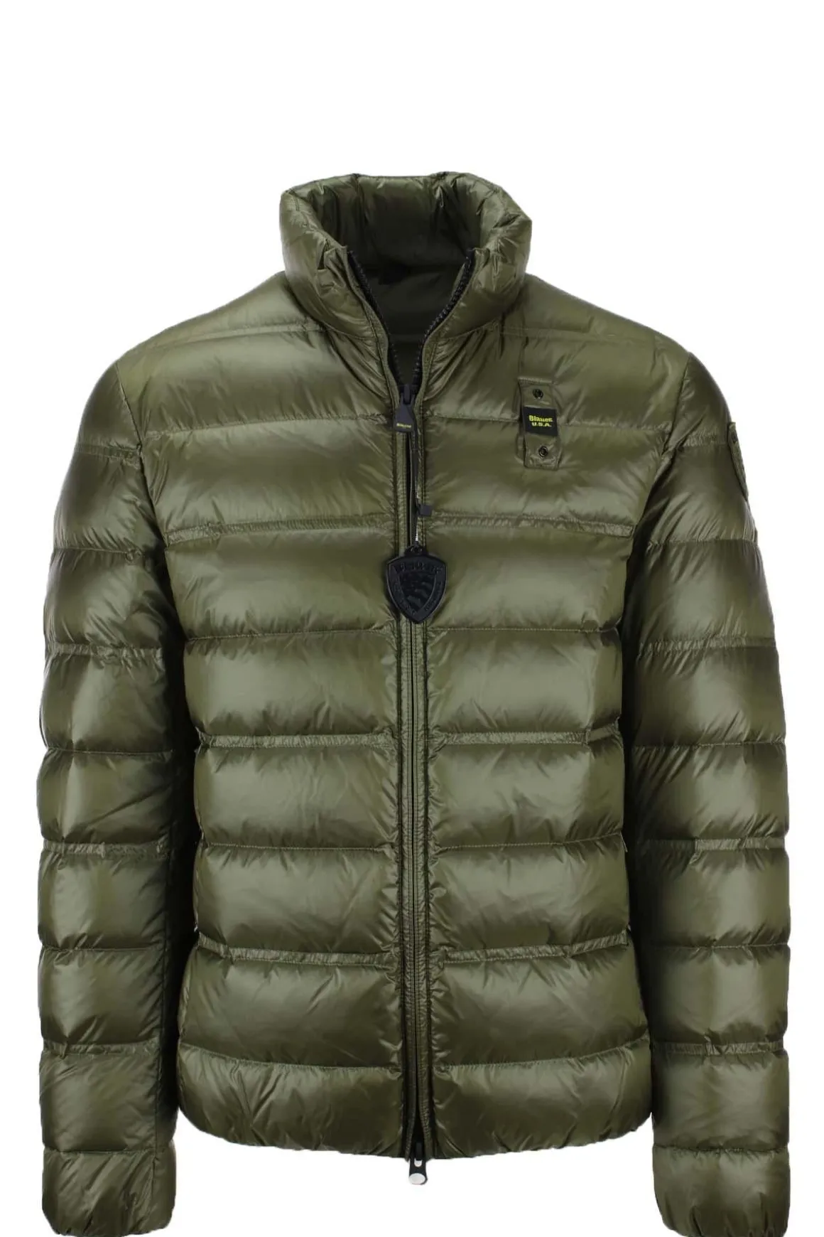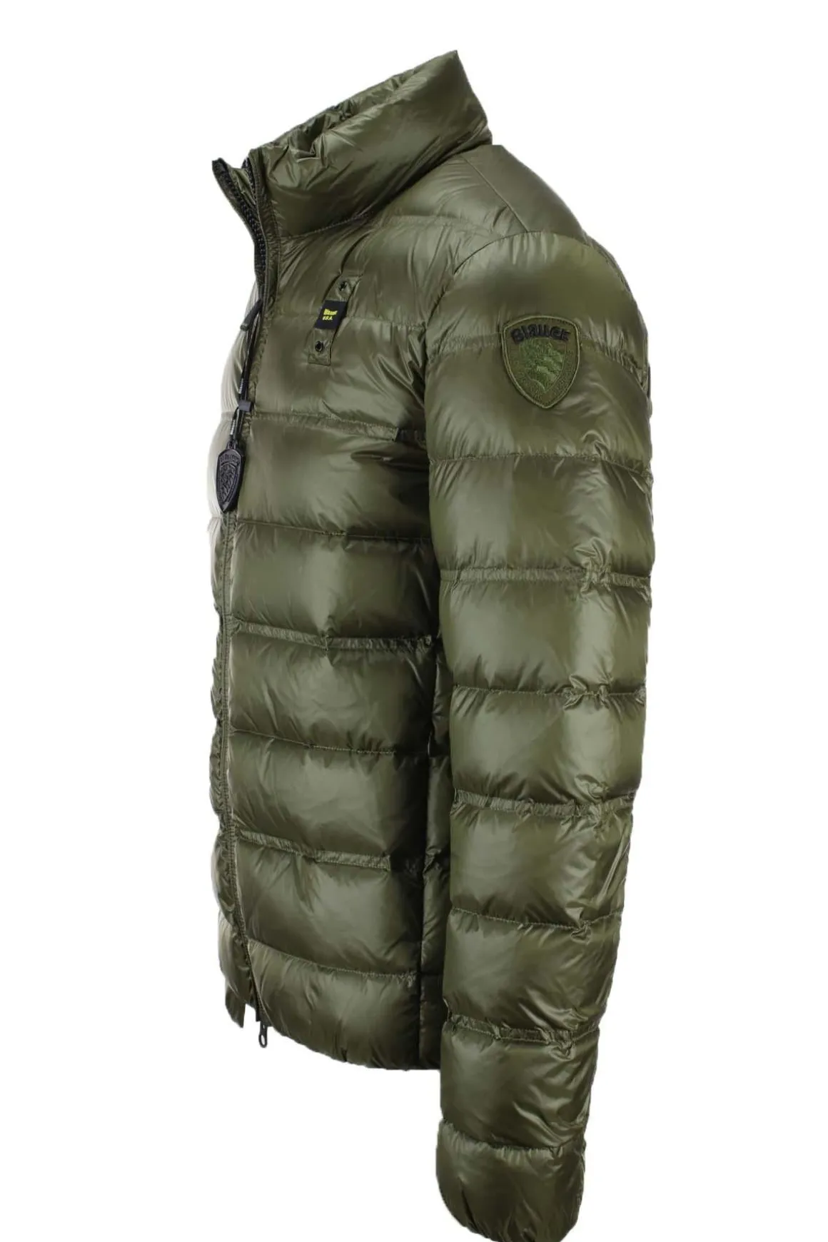 La giacca piumino uomo Blauer con collo alla coreana BELMONT ha una chiusura centrale con zip doppio cusore, tasche anteriori oblique con zip a scomparsa, logo passante Blauer sul petto e patch in tinta sul braccio, elastico interno in vita e nei polsini per una migliore vestibilità, interno con tasche, imbottitura in 90% piuma d’anatra bianca 10% piuma 185gr., tessuto 100% nylon.