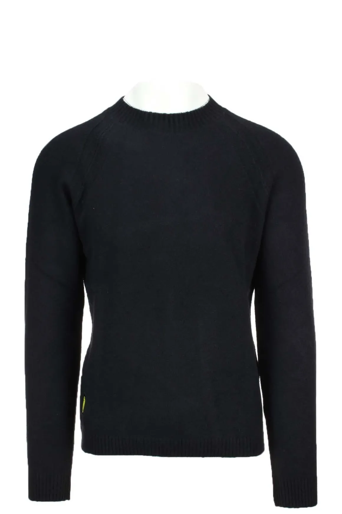 Maglia uomo Blauer realizzata in morbido filato misto lana, collo cratere, maniche raglan, polsini e fondo vita elasticizzati, logo Blauer, vestibilità regolare, 44% acrilico, 25% poliammide, 18% poliestere, 13% lana.