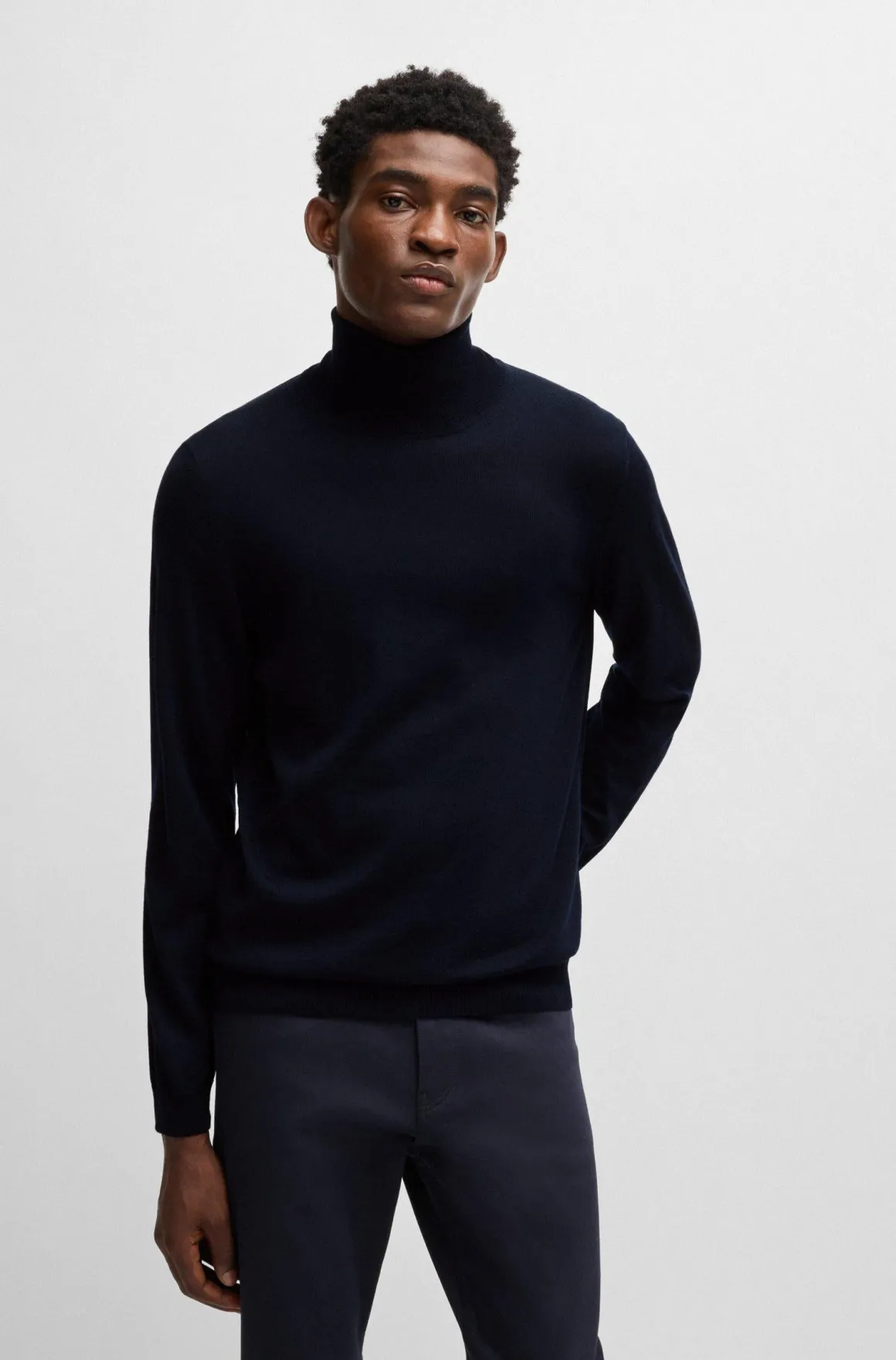 Dolcevita in lana firmato Boss, un capo traspirante, confortevole grazie al filato con cui è realizzato, leggero, adatto anche come sottogiacca, ha una vestibilità slim, polsini, collo e fondo vita in costina elasticizzata, 100% lana vergine.