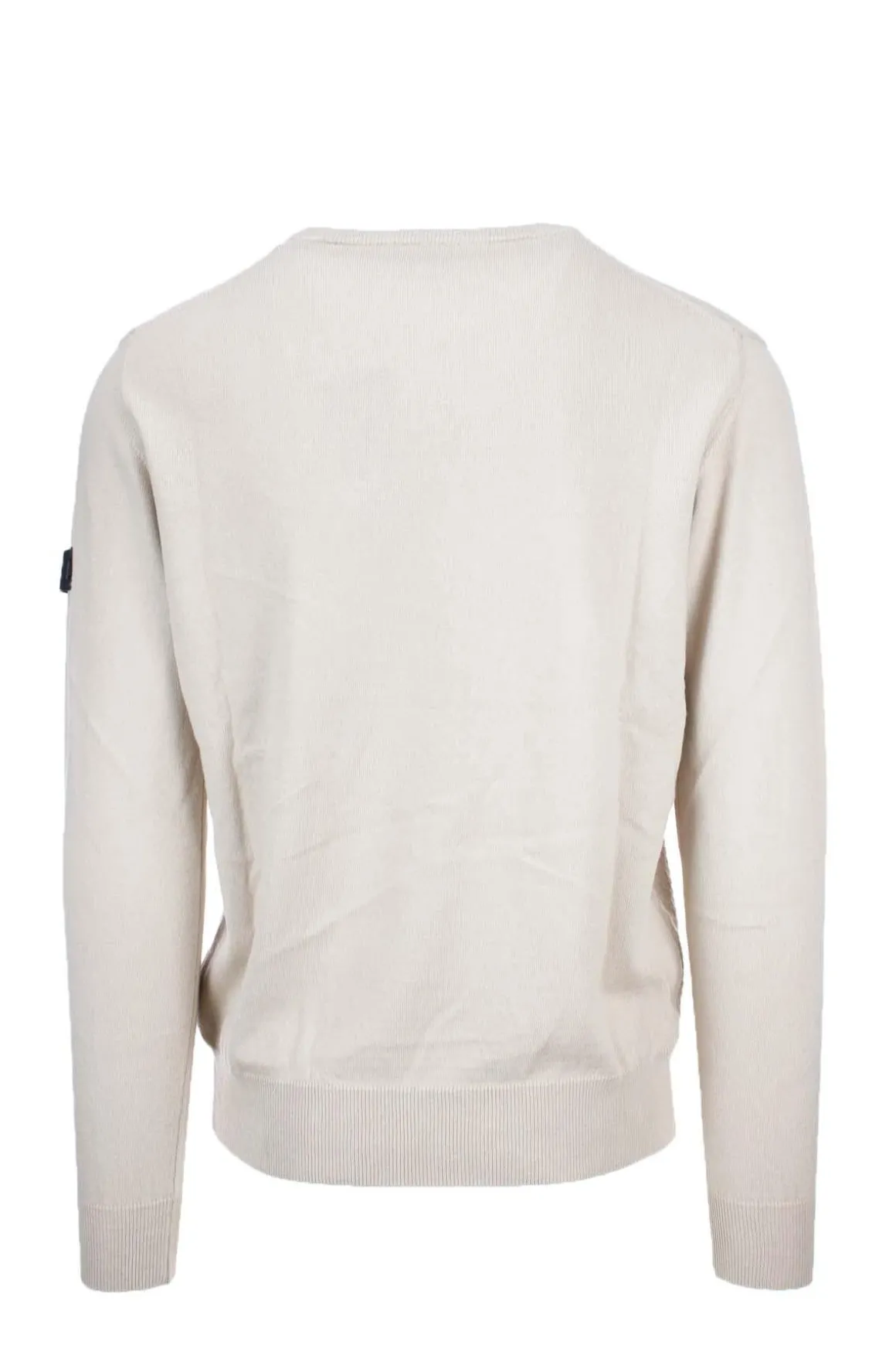 Il pullover unito firmato Peuterey con lavorazione ad intarsi solo sul davanti, logo con passante e bottoni sul braccio, polsini, fondo vita e girocollo in maglina elasticizzata, ideale anche come sottogiacca, vestibilità regular fit, 85% cotone, 15% lana.