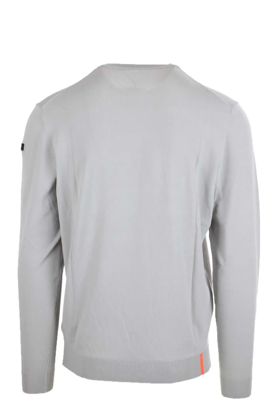 Maglia pullover girocollo uomo, realizzato con pregiati filati tecnici esclusivi RRD che conferiscono doti impareggiabili di vestibilità e confort, ideale per le stagioni intermedie, polsini e fondo vita in maglina elasticizzata, logo sul braccio, striscia arancio posteriore, vestibilità slim fit, 66% viscosa, 31% poliammide, 3% elastan.
