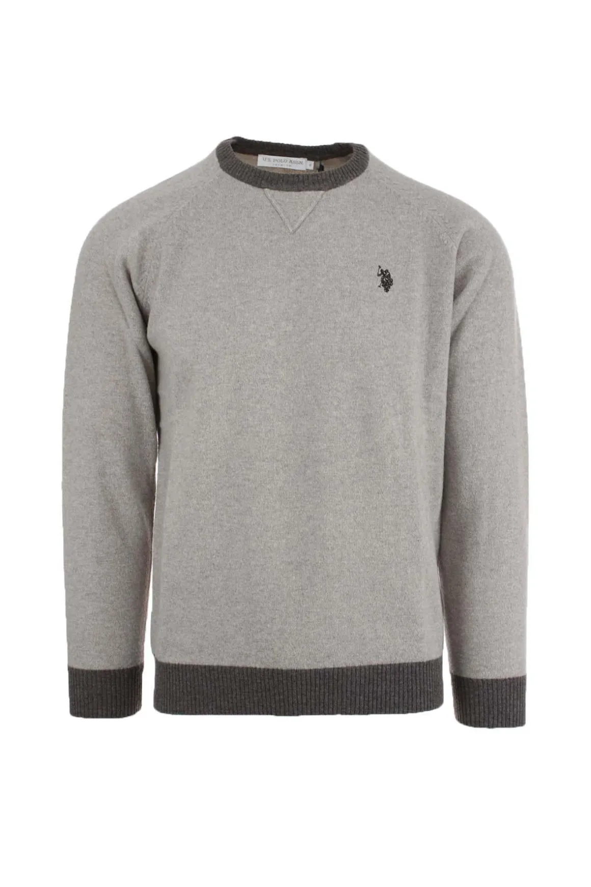 Maglia Pullover uomo in lana con profili in contrasto, taglio felpa e manica raglan, pesantezza media, logo US Polo, polsini e fondo vita elasticizzati, vestibilità regolare, 70% lana, 30% cachemire.