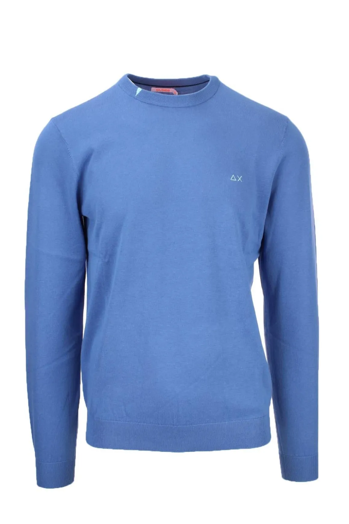 Maglia pullover girocollo uomo, realizzato in filo di cotone, polsini e fondo vita in maglina elasticizzata, lodo SUN68 sul petto, vestibilità regolare, 100% cotone.
