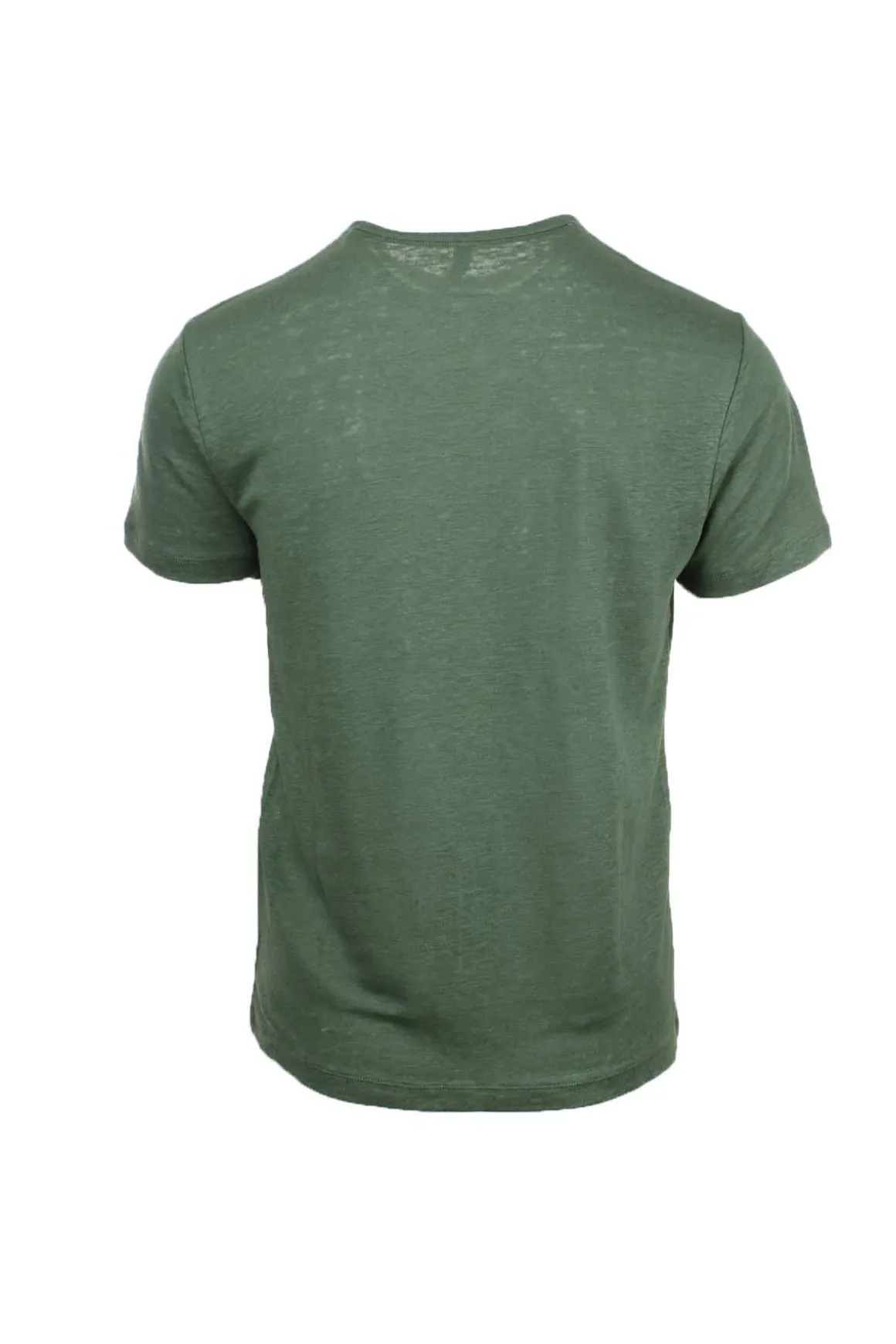 Maglia t shirt uomo in filato di lino tinta unita, mezza manica, logo Sun68 sul petto, vestibilità regolare, 100% lino.
