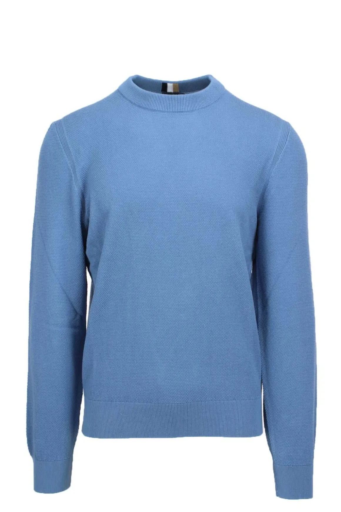 Maglione girocollo realizzato in filo di cotone con microlavorazione grana riso, polsini e fondo vita elasticizzati, vestibilità regolare, si consiglia acquistare una taglia in meno della solita, 100% cotone.