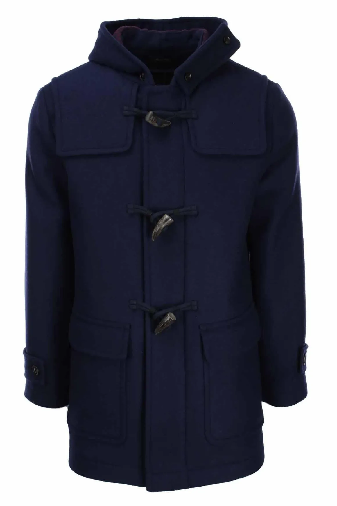 Chiusura centrale con alamari e zip, tasche a toppa applicate ai fianchi, cappuccio fisso, bordo manica con passante a bottone , morbido e caldo tessuto misto lana, interno sfoderato in contrasto fantasia pied a pull. Vestibilità regular fit.