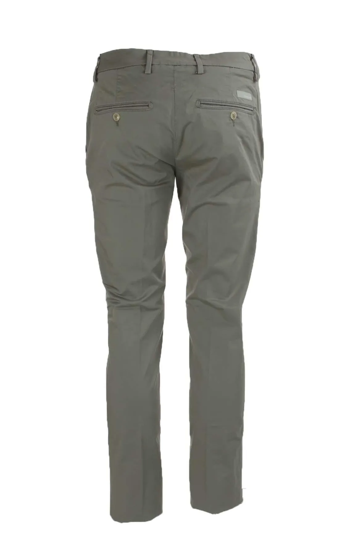 Pantalone in raso di cotone stretch, modello tasche america, chiusura con zip, passante e bottone interno, tasche anteriori oblique, posteriori a filo con bottoni, fondo 17cm, vestibilità regolare slim fit, 98% cotone, 2% elastan.