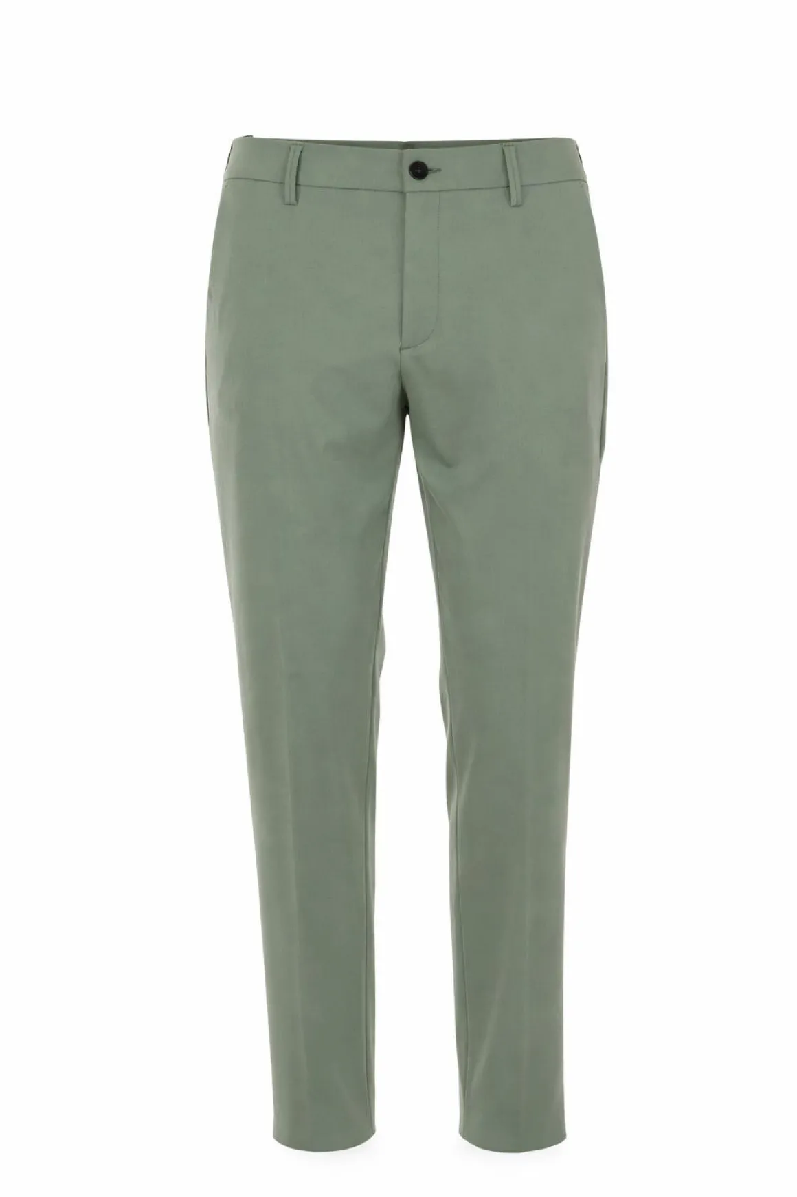 Pantalone chino Siviglia da uomo realizzato in morbido tessuto jersey misto cotone che garantisce comfort e piacevolezza al tatto. Il modello presenta elastico in vita per una tenuta ottimale, chiusura con zip e due tasche posteriori a filo. La linea è caratterizzata da gamba comoda con fondo stretto e vestibilità regolare. Composizione: 58% cotone, 37% poliammide, 7% elastan.
