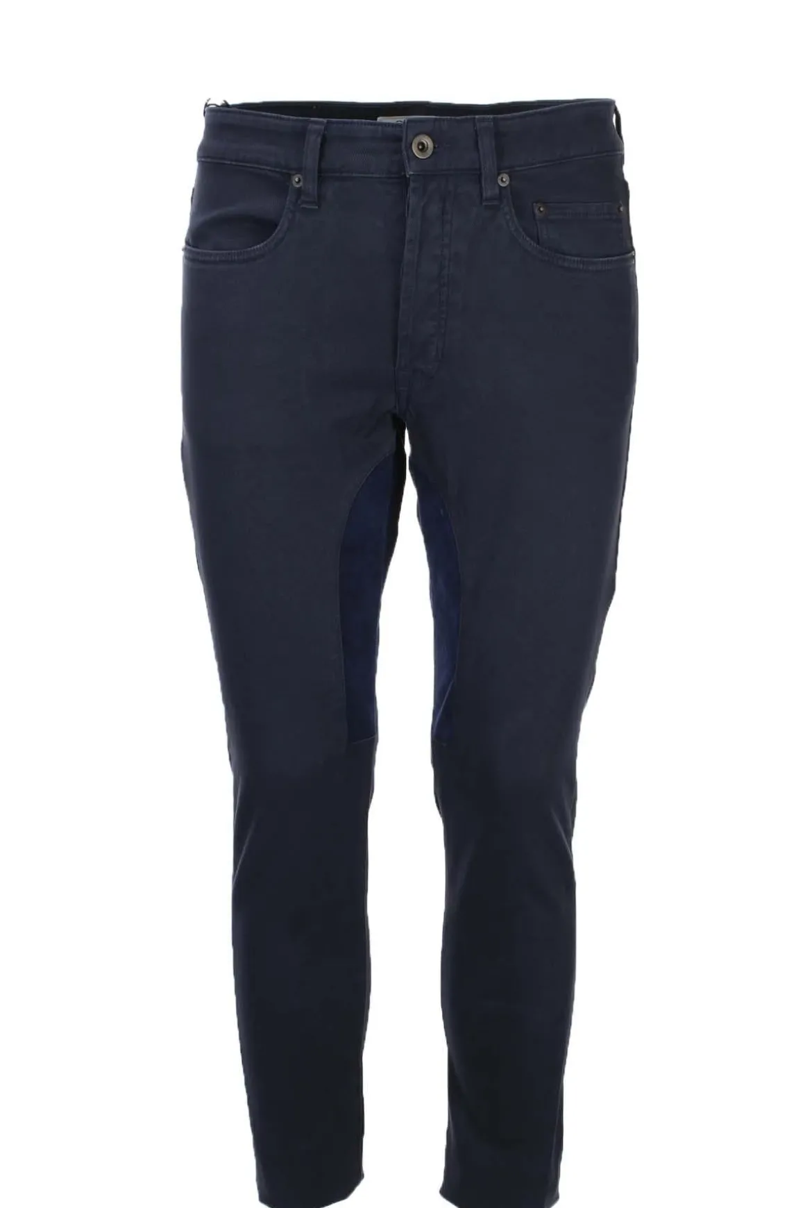 Pantalone 5 tasche uomo Siviglia, realizzato in cotone stretch, toppa in tinta in alcantara, chiusura bottoni in metallo, borchie, vestibilità regolare, 98% cotone, 2% elastan.