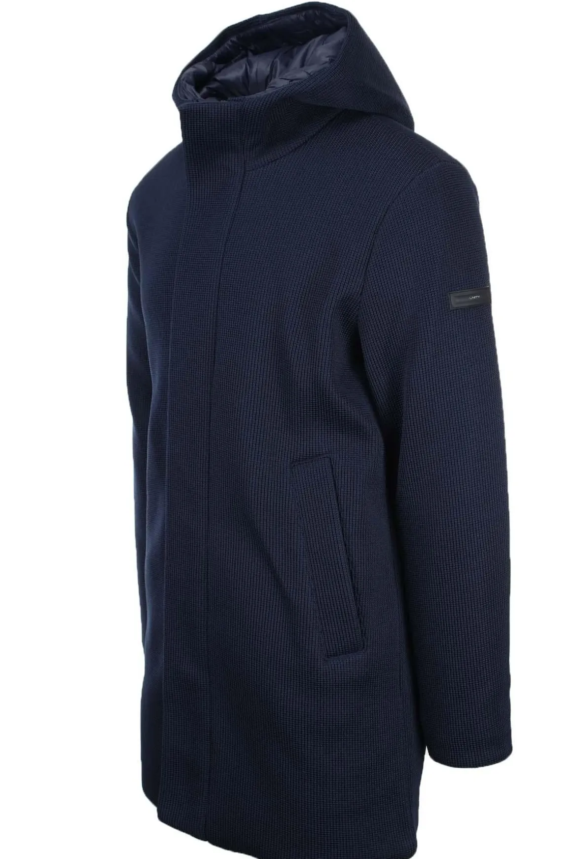 Parka uomo con cappuccio fisso Unity, chiusura con zip coperta da pattina e bottoni a pressione, modello Bread, tasche anteriori ai fianchi, logo sul braccio, intermo trapuntato con imbottitura calda ma leggera, questo capo altamente innovativo è realizzato in tessuto Tricotech, una maglina tecnica a coste, con grandi doti di flessibilità e confort, studiato per coniugare look e funzionalità per uno nuovo stile urban metropolitano.