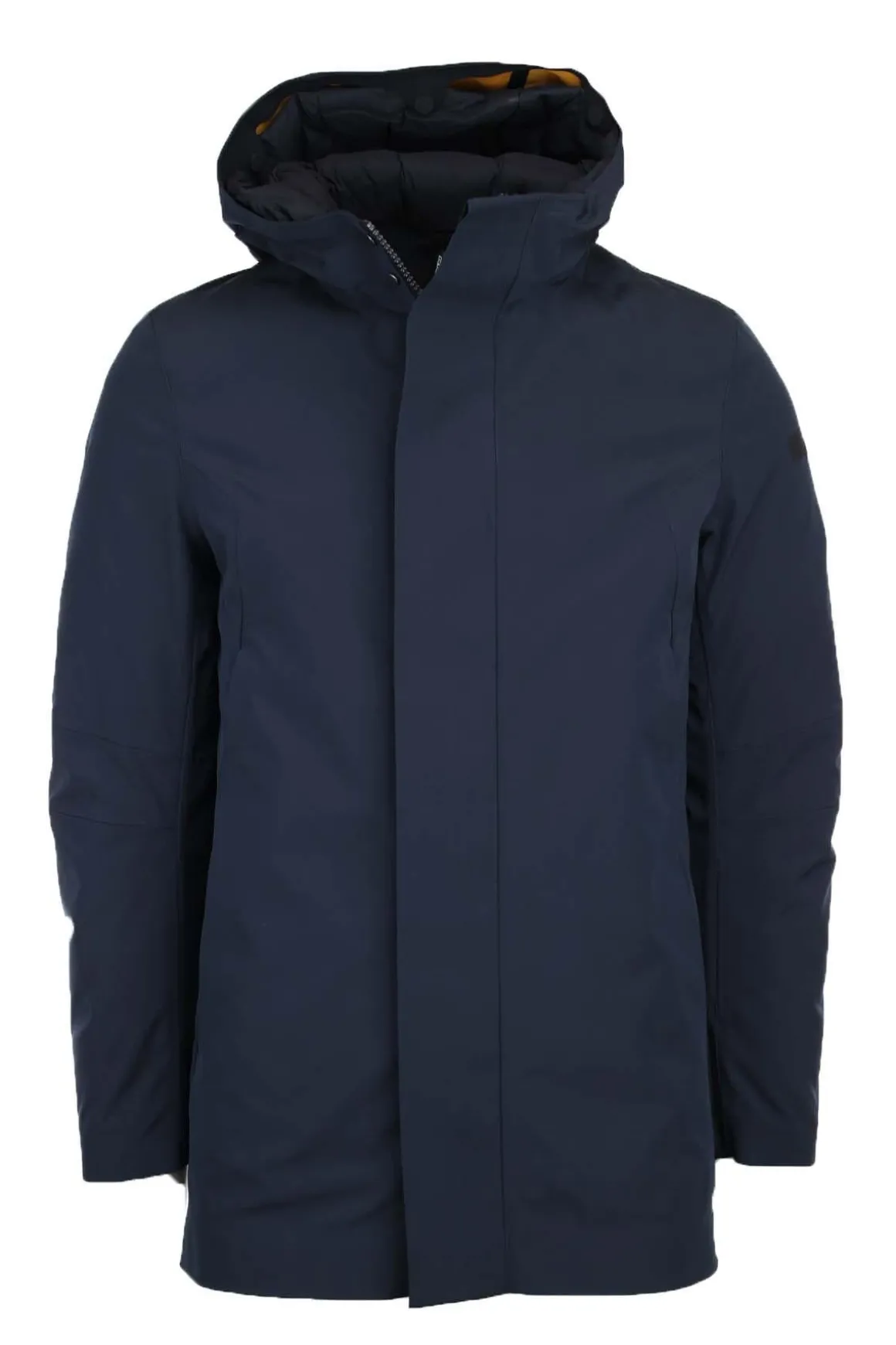 Nuovo modello della collezione RRD il parka in tessuto spalmato con calda imbottitura interna in piuma staccabile, il capo può essere usato in versione leggera senza l’imbottitura per temperature meno rigide, cappuccio fisso, chiusura con zip nascosta da pattina e bottoni automatici, ampie tasche ai fianchi con zip, lunghezza media, vestibilità regolare, 85% poliamide, 15% elastan.