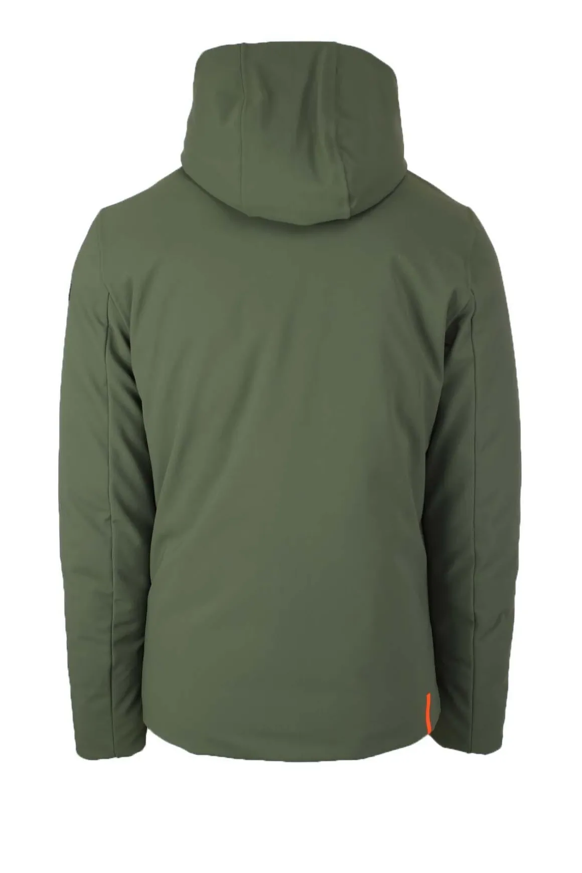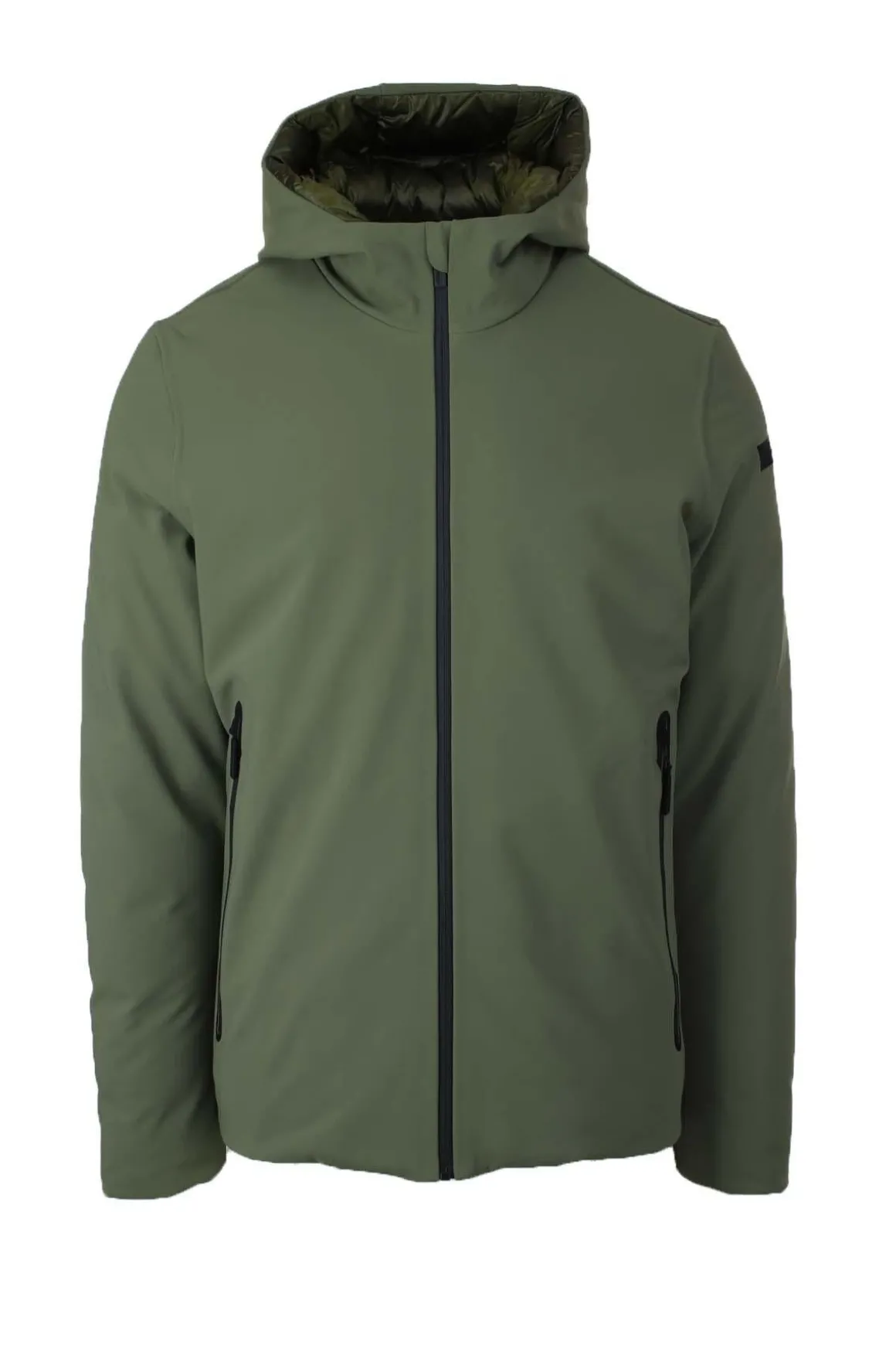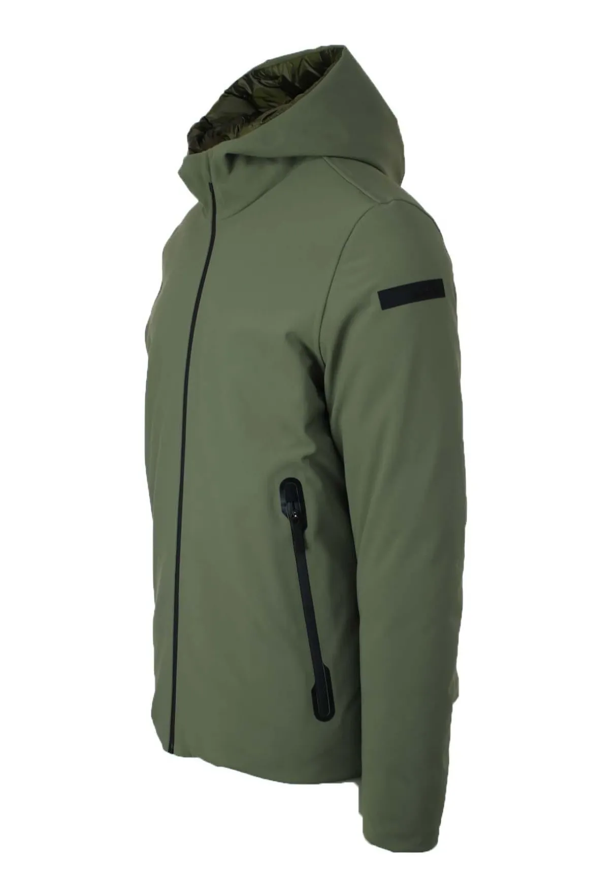 Giubbotto corto uomo RRD, chiusura centrale con zip doppio cursore, tasche anteriori termosaldate con zip, cappuccio fisso, interno foderato in nylon trapuntato e imbottito in piuma con tasche, tessuto esterno progettato utilizzando il metodo esclusivo RRD “Holystic Technology 3” che garantisce funzionalità, stile e unicità del prodotto grazie a tre componenti che, uniti insieme garantiscono impermeabilità, traspirabilità, termicità e grande vestibilità.