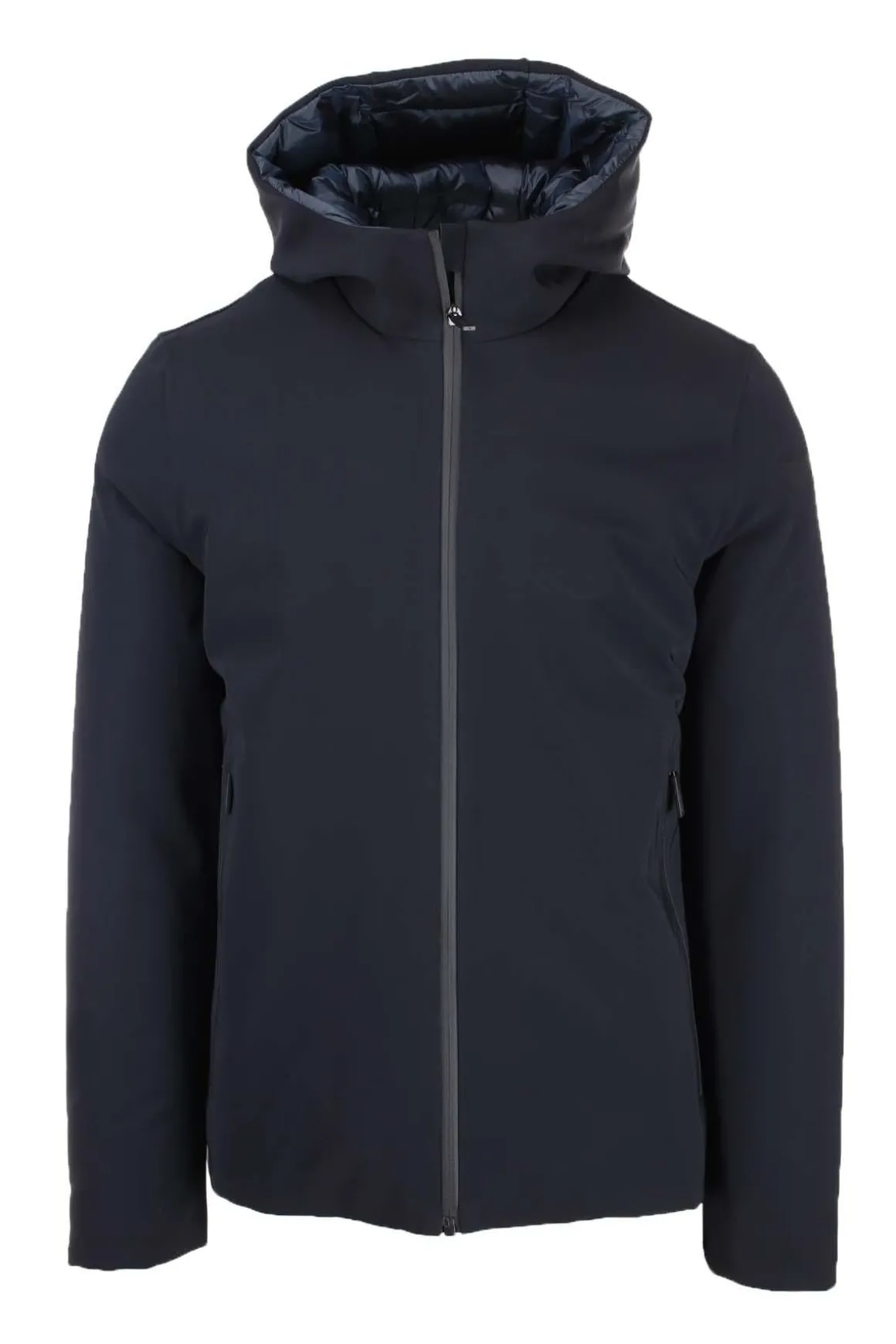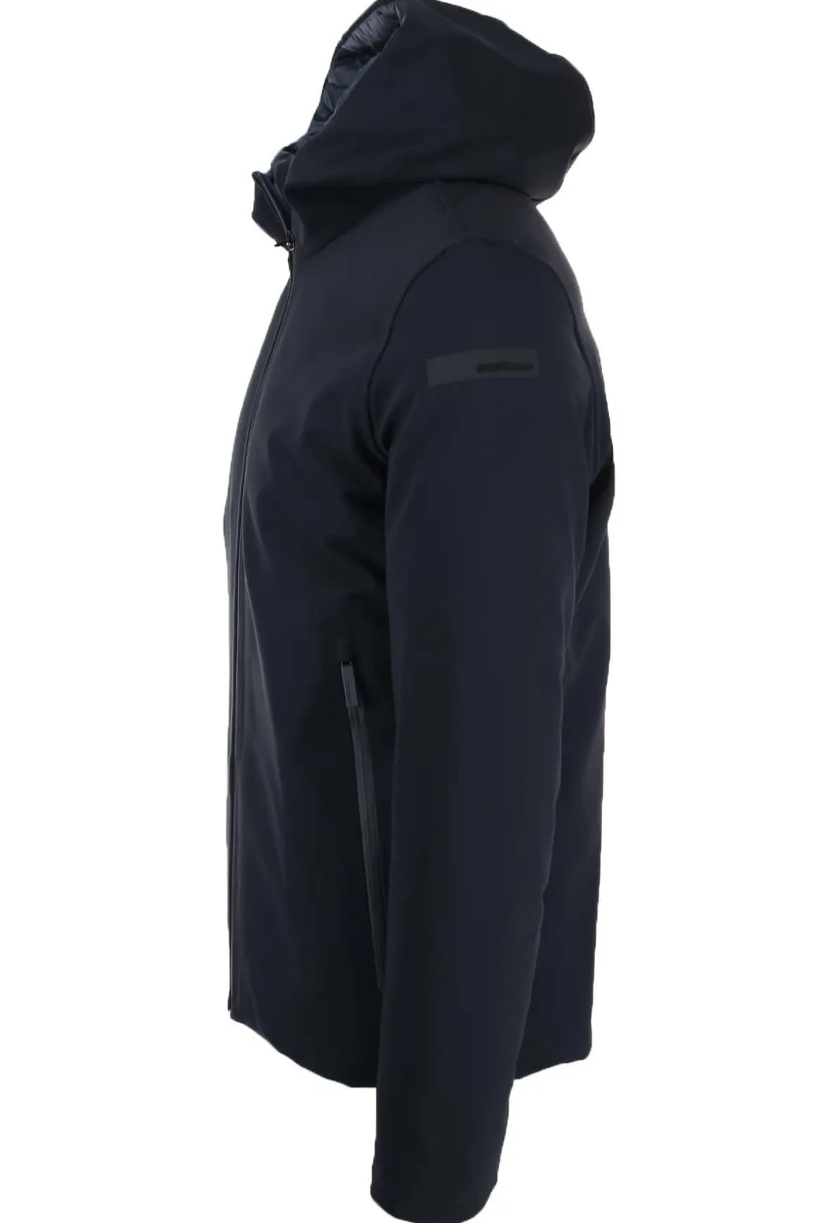Giubbotto corto uomo RRD, chiusura centrale con zip doppio cursore, tasche anteriori termosaldate con zip, cappuccio fisso, interno foderato in nylon trapuntato e imbottito in piuma con tasche, tessuto esterno progettato utilizzando il metodo esclusivo RRD “Holystic Technology 3” che garantisce funzionalità, stile e unicità del prodotto grazie a tre componenti che, uniti insieme garantiscono impermeabilità, traspirabilità, termicità e grande vestibilità.