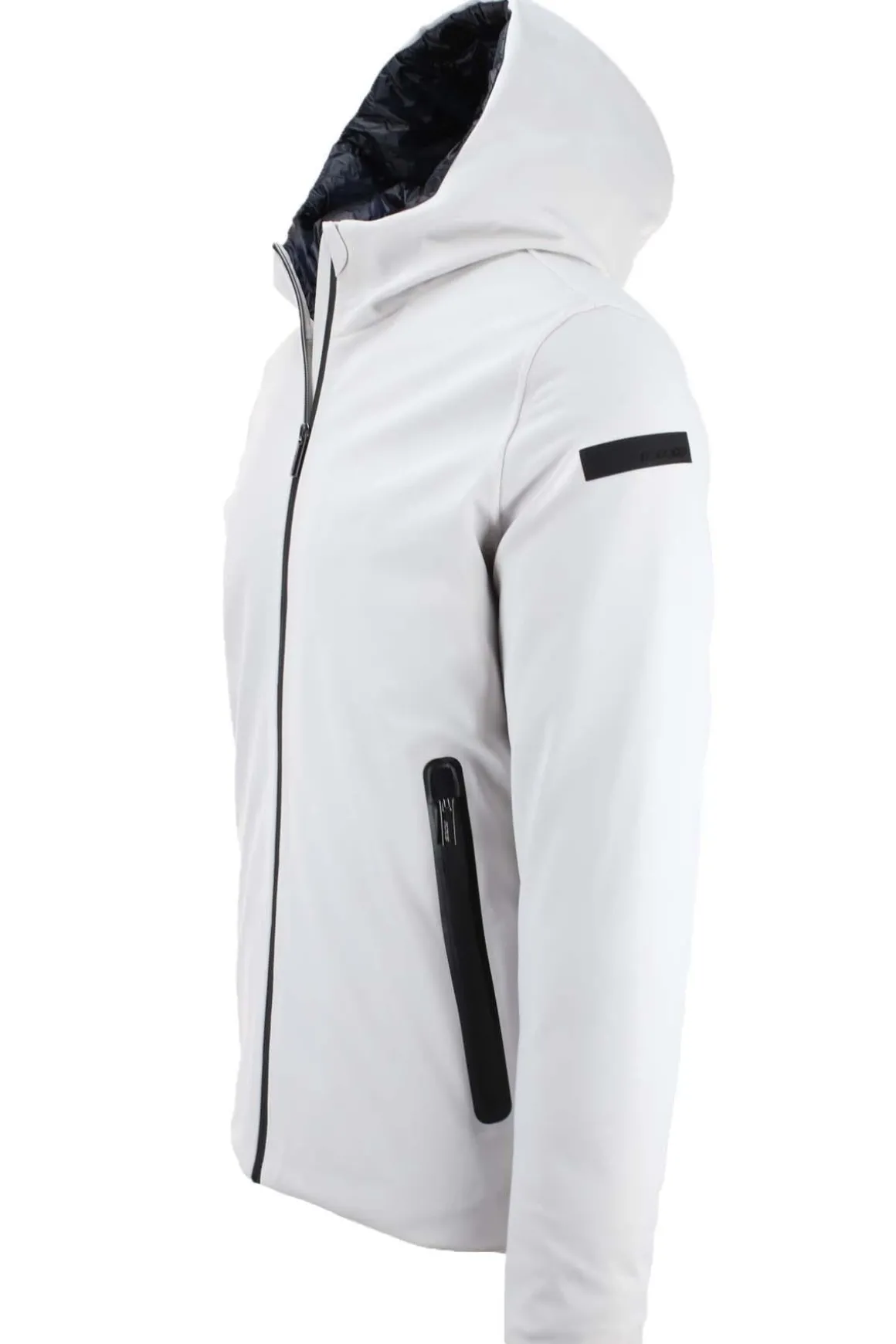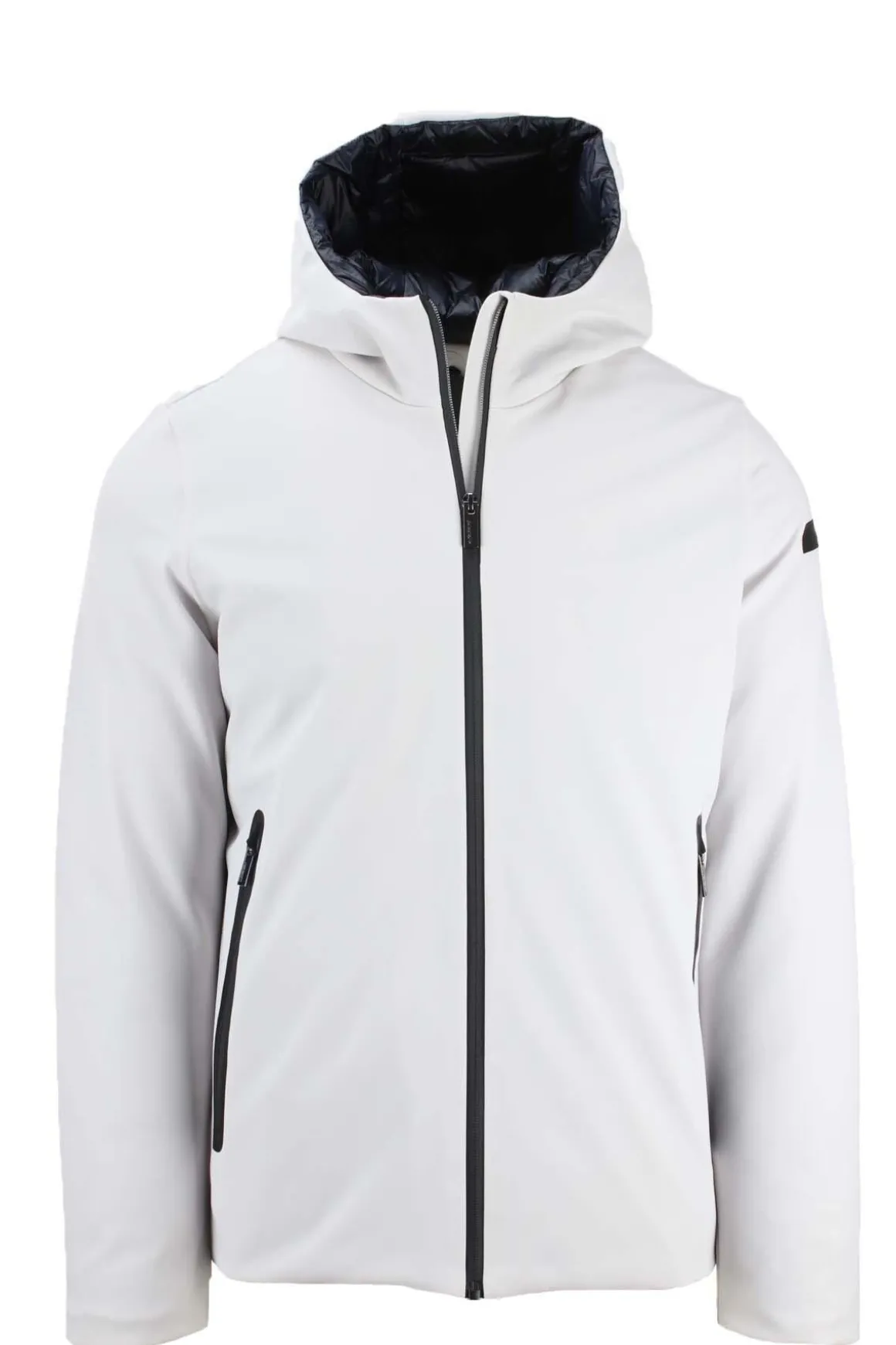 Giubbotto corto uomo RRD, chiusura centrale con zip doppio cursore, tasche anteriori termosaldate con zip, cappuccio fisso, interno foderato in nylon trapuntato e imbottito in piuma con tasche, tessuto esterno progettato utilizzando il metodo esclusivo RRD “Holystic Technology 3” che garantisce funzionalità, stile e unicità del prodotto grazie a tre componenti che, uniti insieme garantiscono impermeabilità, traspirabilità, termicità e grande vestibilità.