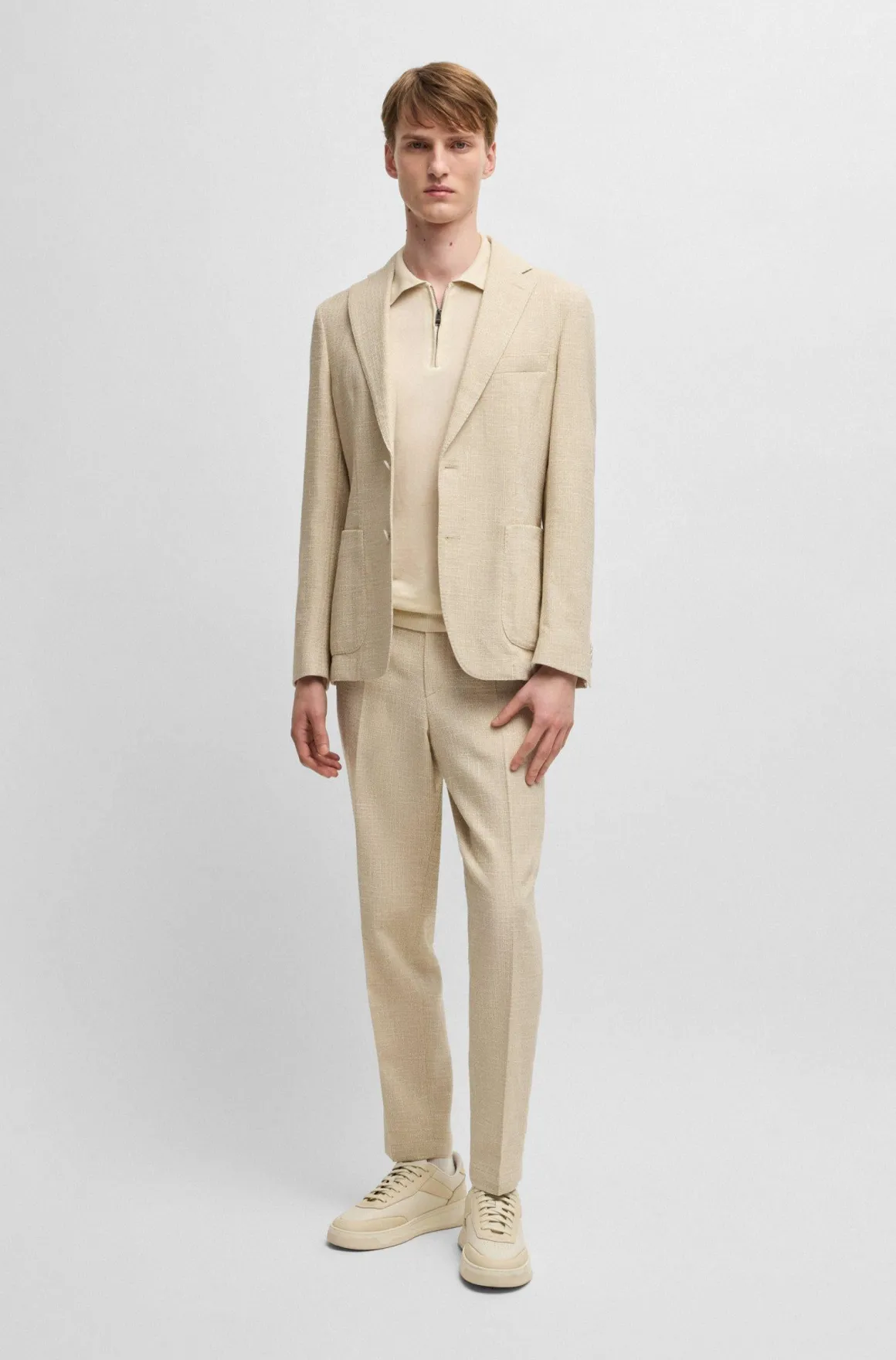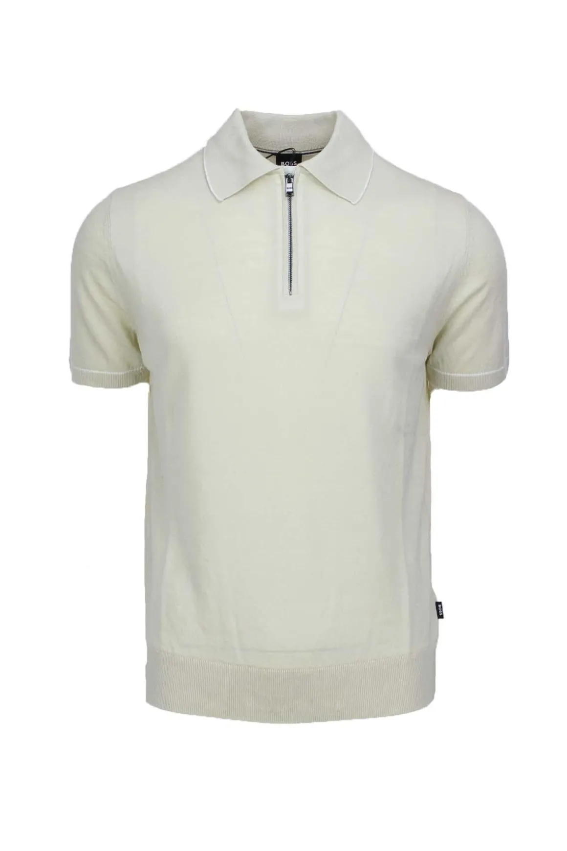 Polo mezza manica in filo di misto lino, profili in contrasto su collo e maniche, chiusura con zip, logo boss a bandiera sul fianco, vestibilità regolare/comoda, si consiglia acquistare una taglia inferiore alla solita, capo leggero e confortevole dallo stile fashion da indossare tutta l’estate, 56% lino, 44% viscosa.