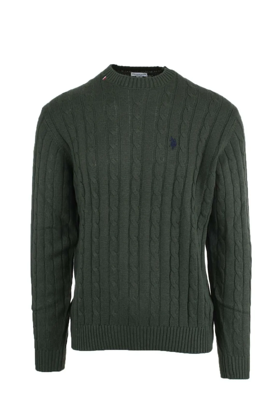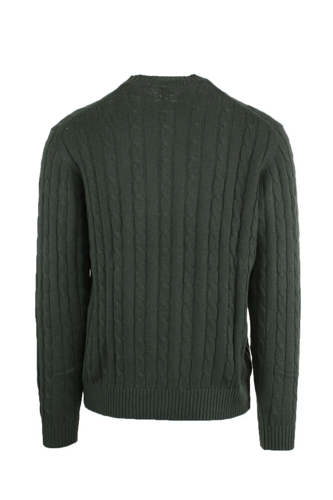 Pullover girocollo con lavorazione a trecce, realizzato in cotone e cachemire, logo in contrasto sul petto, polsini e fondo vita elasticizzati, 90% cotone, 10% cachemire, vestibilità regolare.