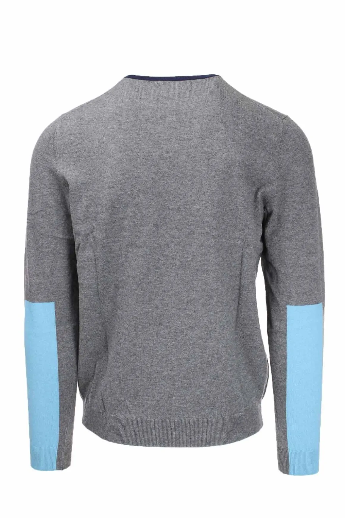 Tinta unita con logo in evidenza sul petto e collo in contrasto, morbidissimo filato in lana e cotone pesantezza media, polsini e fondo vita elasticizzati, vestibilità slim fit, 50% lana 50% cotone.
