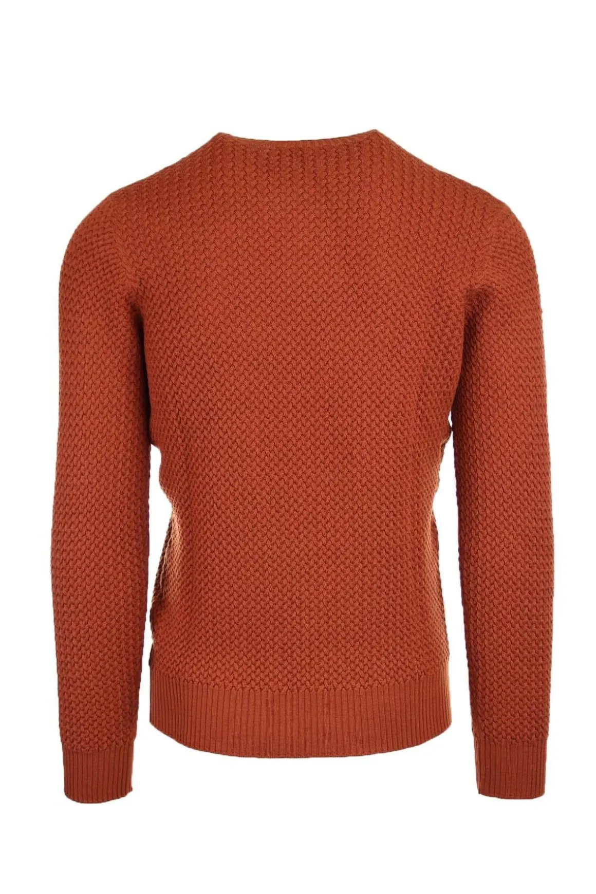 La qualità dei filati usati nelle maglie GranSasso rende il capo piacevole da indossare, con una vestibilità impeccabile e una resa cromatica unica. Lavorazione a motivo trecce in tutto il corpo per questo girocollo, le maniche ed il fondo vita in maglia inglese elasticizzata, vestibilità regular fit, 100% lana merino.