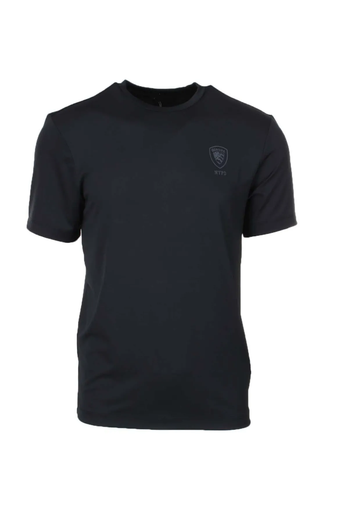 Maglietta t-shirt mezza manica uomo in tessuto tecnico, logo Blauer stampato sul petto, vestibilità regolare, 92% poliestere, 8% elastan.