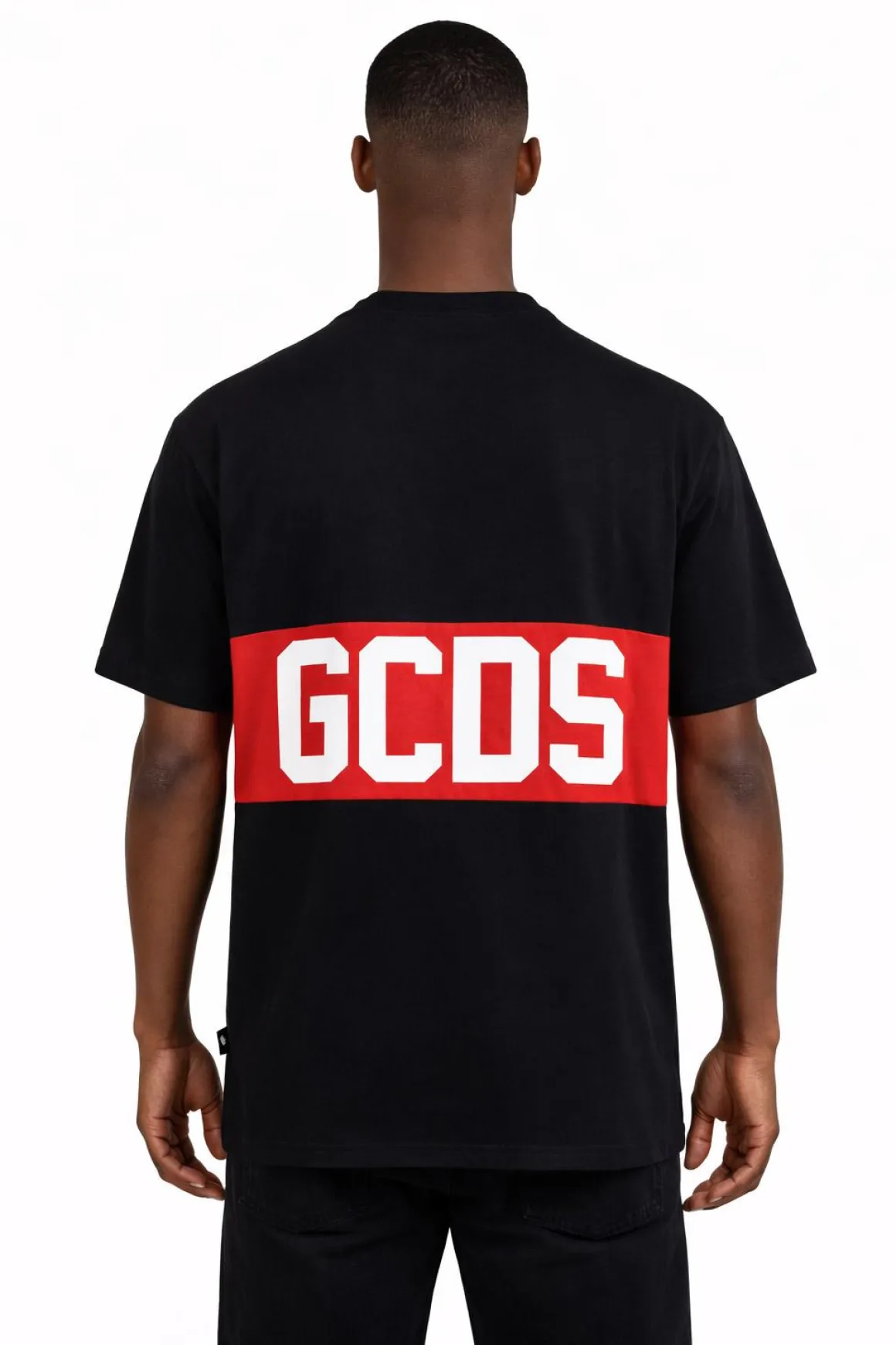 T-shirt GCDS in jersey di cotone con banda logata anteriore e posteriore, vestibilità regolare e design d’impatto contemporaneo.
