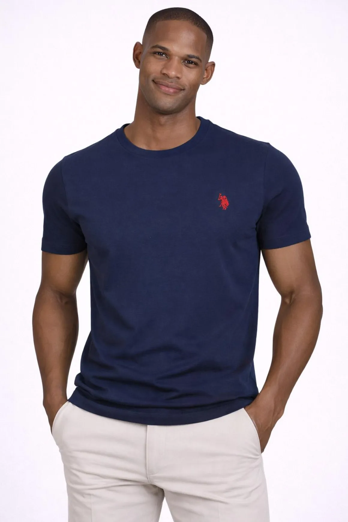 US Polo Assn t-shirt uomo in cotone con logo ricamato sul petto, un capo essenziale dallo stile pulito e versatile. Realizzata in morbido jersey di cotone, offre comfort, traspirabilità e una piacevole sensazione sulla pelle. Il design minimal con girocollo e linea regolare la rende perfetta per l’uso quotidiano, facile da abbinare a jeans, bermuda o pantaloni casual per un look semplice ma curato. Vestibilità regolare.