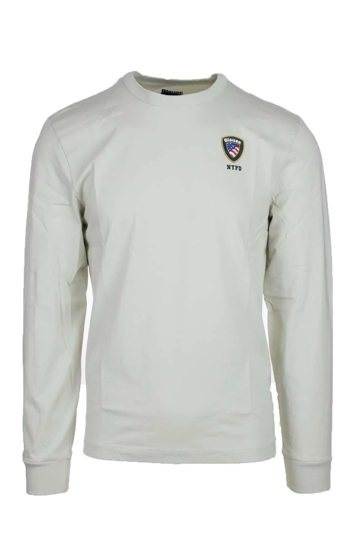 Tshirt manica lunga con scudetto gommato Blauer, realizzata in jersey di cotone, polsini elasticizzati, fondo a scatola, vestibilità regolare, 100% cotone.