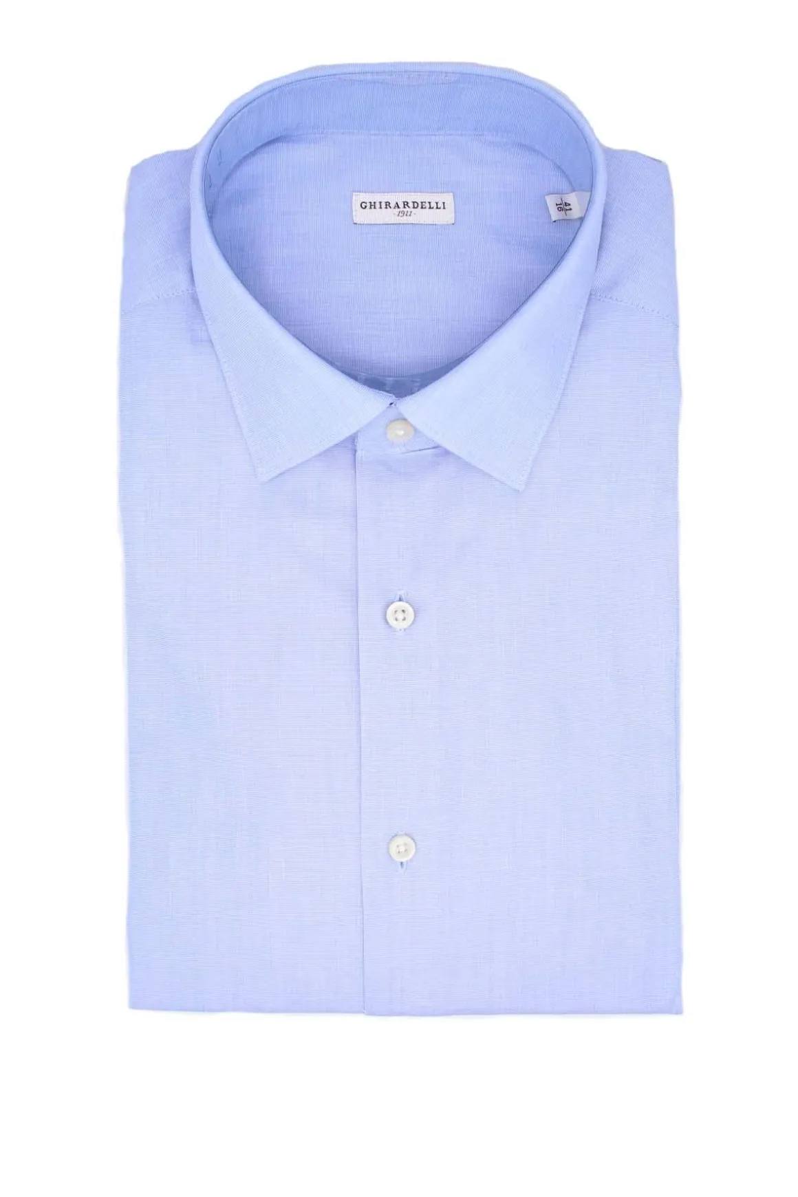 Camicia manica lunga in fine cotone tinta unita fil a fil, colletto Italia con stecche estraibili, vestibilità con volumi aggiornati, polsini arrotondati, 100% .