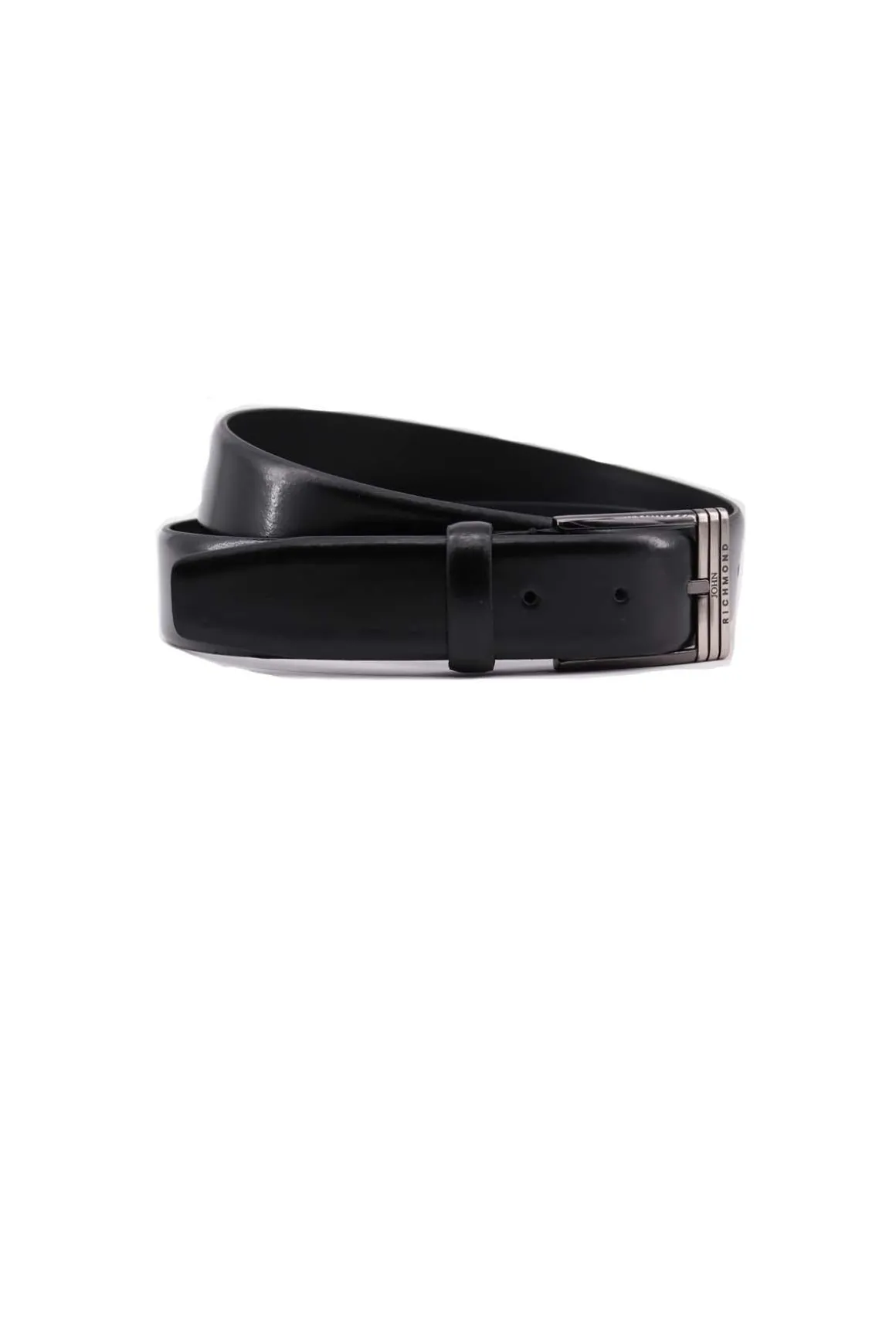 Cintura in pelle liscia con fibbia in metallo brunito, logo John Richmond nel passante, altezza cm3, Made in Italy, vera pelle.