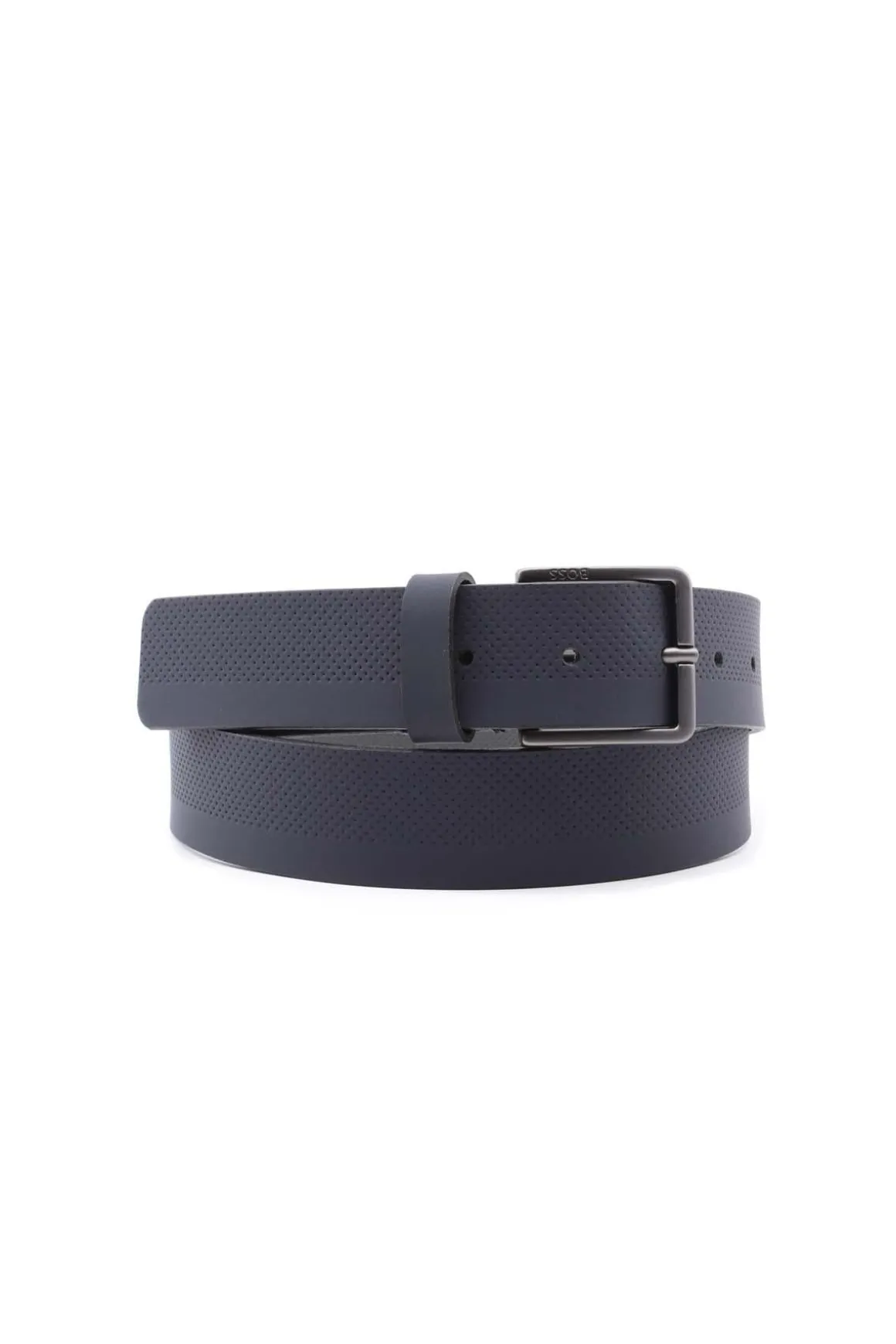 Cintura in pelle micro puntinata, fibbia logata in metallo brunito, altezza cm.3,5, Vera Pelle.