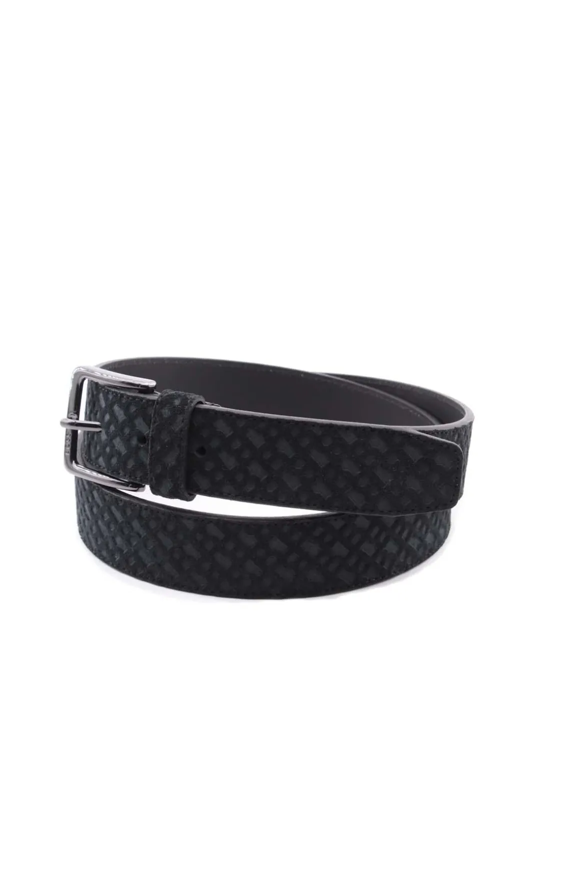 Cintura uomo Boss in pelle scamosciata con monogrammi tono su tono,fibbia in metallo color canna di fucile lucido con logo inciso, altezza 3,5cm, interno foderato, ideale per un look sportivo ed elegante.