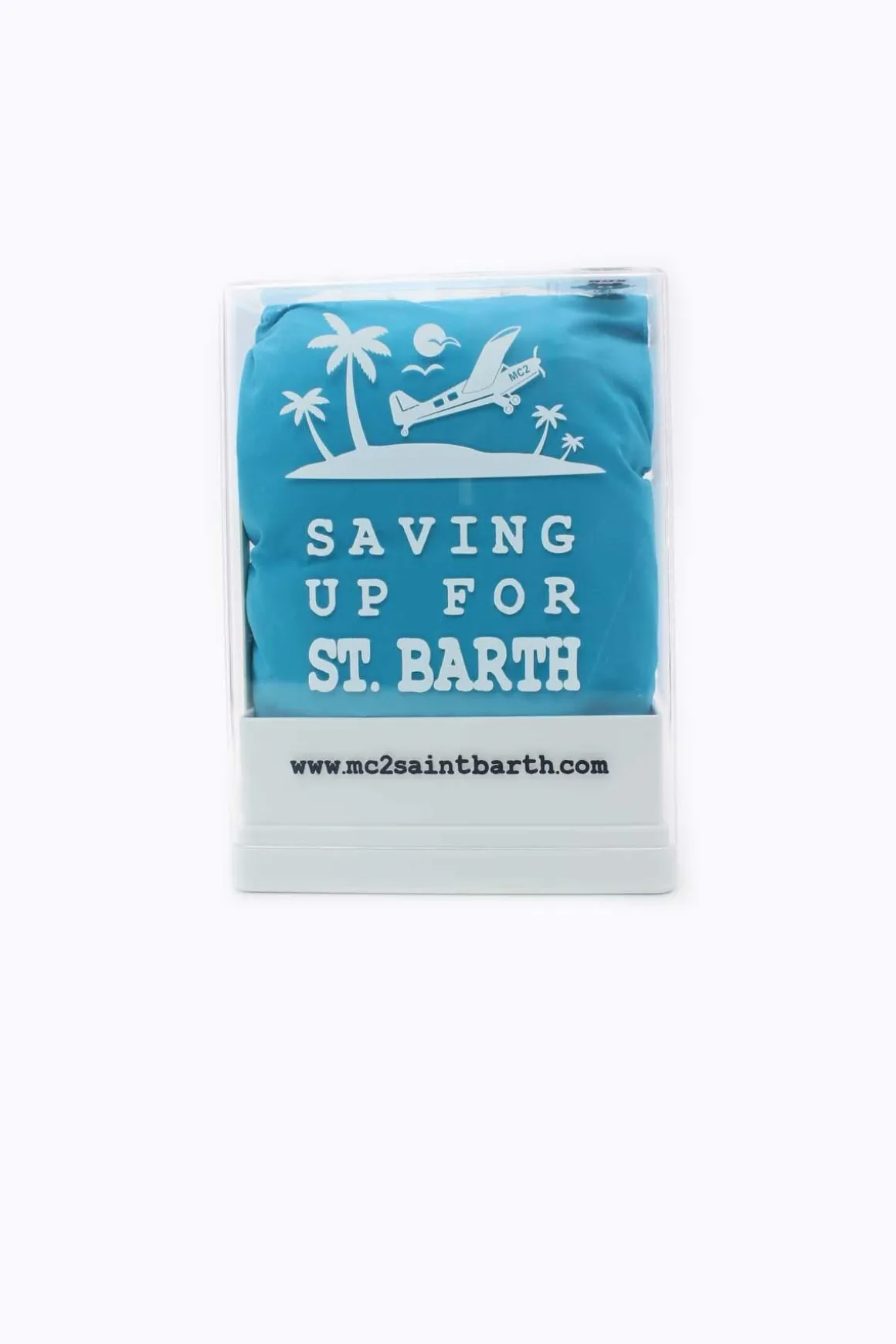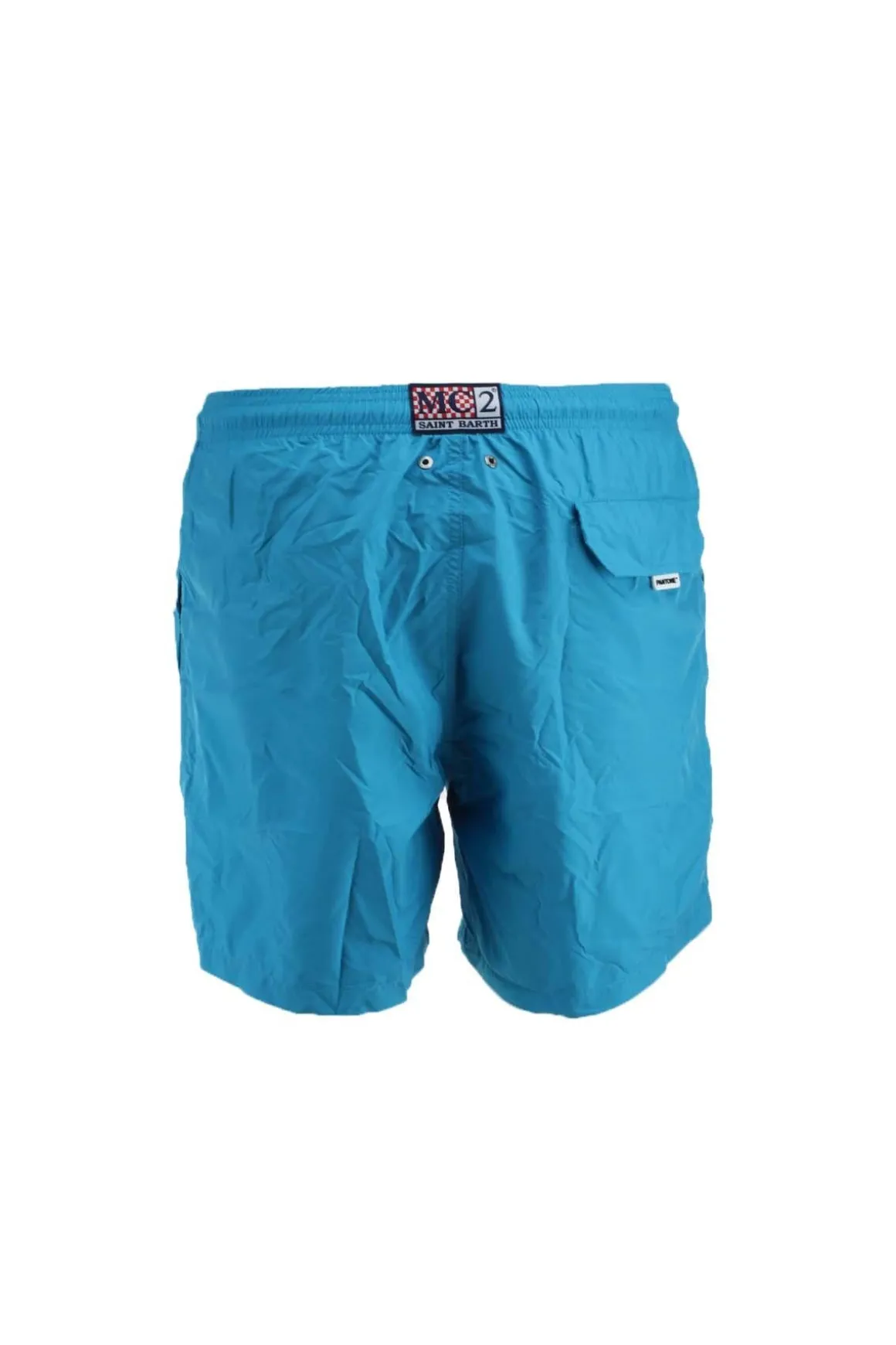 Costume mare uomo, realizzato in tessuto leggero tinta unita serie Pantone MC2 Saint Barth, asciugatura rapida, lunghezza media con slip interno ergonomico, elastico in vita con laccio coulisse, tasche a filo ai fianchi e posteriore con pattina, patch Saint Barth sulla cintura posteriore. I materiali usati sono 100% riciclati ed ecosostenibili, il capo viene consegnato all’interno di un contenitore trasparente in plexiglass usabile come salvadanaio. Vestibilità regolare, acquista la tua solita taglia.