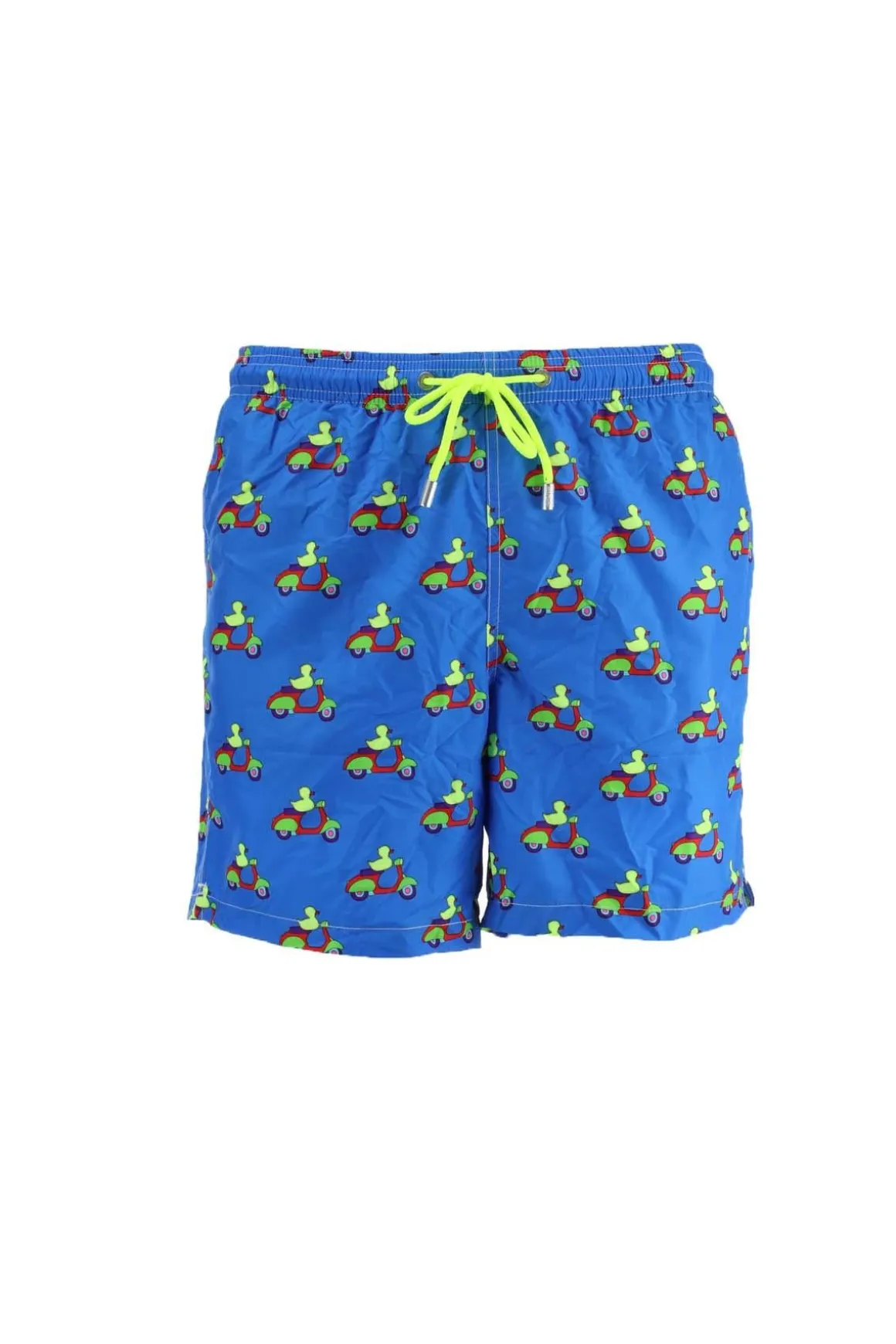 Costume per uomo fantasia Vespa Duck Special Edition by Marco Lodola, realizzato in tessuto microfibra leggera ad asciugatura rapida, lunghezza media con slip interno ergonomico, elastico in vita con laccio coulisse, tasche a filo ai fianchi e posteriore con calamita, taschino portaspiccioli anteriore, logo Saint Barth applicato. I materiali usati sono 100% riciclati ed ecosostenibili, insieme al capo viene consegnata una linguetta di riconoscimento bagagli personalizzata MC2 Saint Barth. Vestibilità regolare, acquista la tua solita taglia.