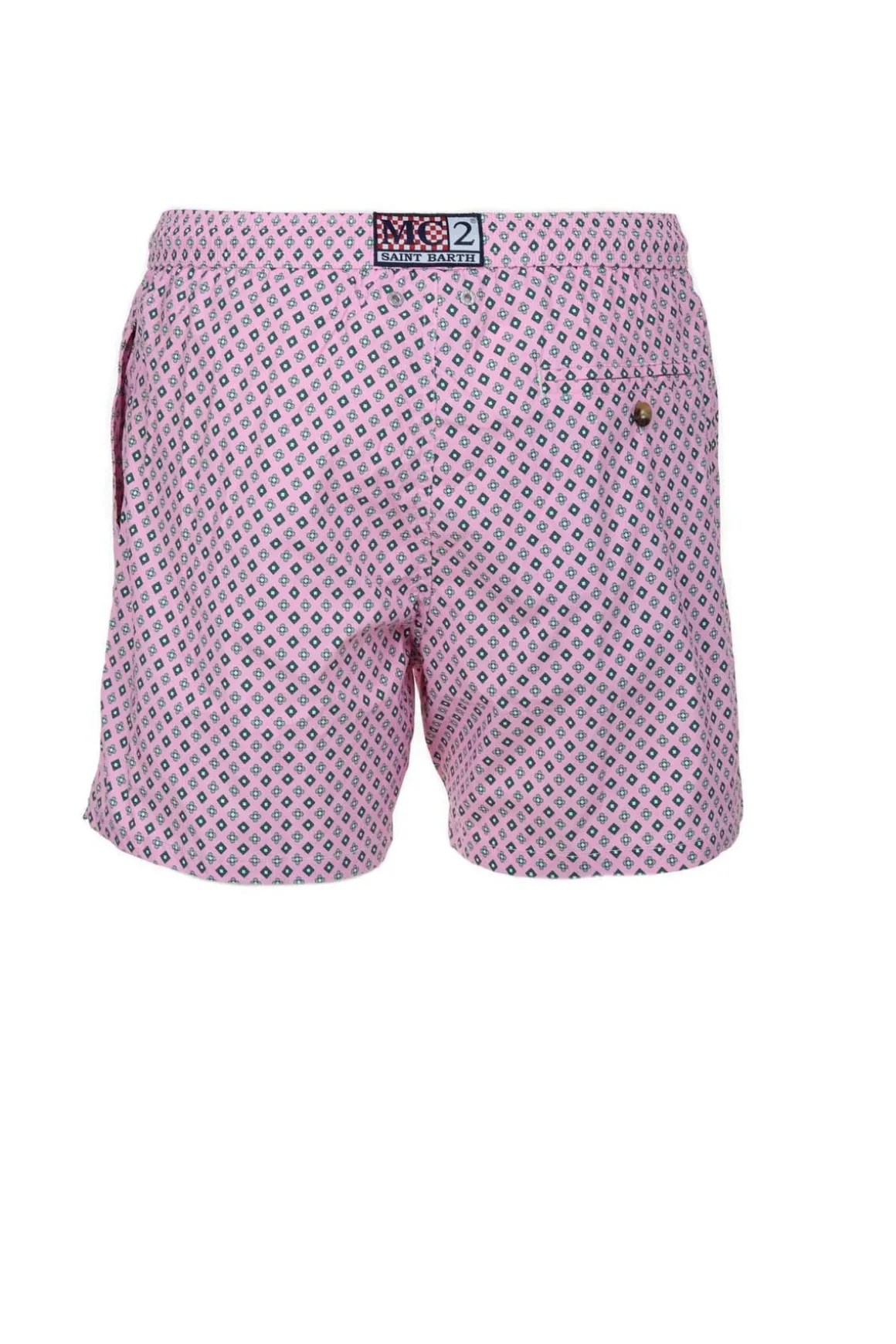 Costume MC2 Saint Barth da uomo fantasia realizzato in microfibra leggera ad asciugatura rapida. Il modello presenta slip interno ergonomico antibatterico e antiallergico, elastico in vita con laccio coulisse, tasche a filo ai fianchi e tasca posteriore con bottone. Dotato di taschino interno portaspiccioli e logo Saint Barth applicato, il capo è ripiegabile nella tasca posteriore ed è corredato da linguetta personalizzata MC2 Saint Barth per il riconoscimento bagagli.Vestibilità regolare