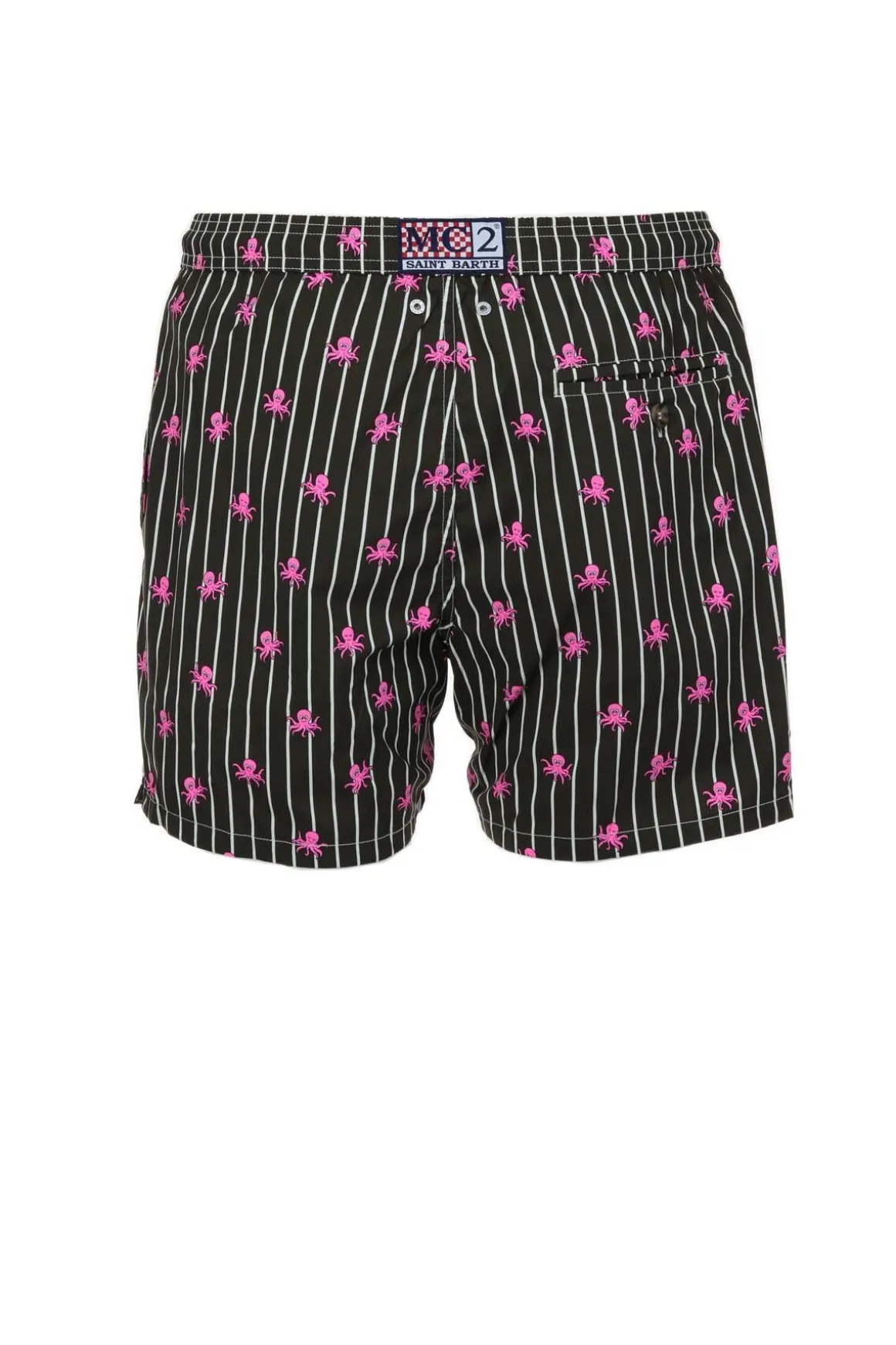 Costume MC2 Saint Barth da uomo fantasia realizzato in microfibra leggera ad asciugatura rapida. Il modello presenta slip interno ergonomico antibatterico e antiallergico, elastico in vita con laccio coulisse, tasche a filo ai fianchi e tasca posteriore con bottone. Dotato di taschino interno portaspiccioli e logo Saint Barth applicato, il capo è ripiegabile nella tasca posteriore ed è corredato da linguetta personalizzata MC2 Saint Barth per il riconoscimento bagagli.Vestibilità regolare