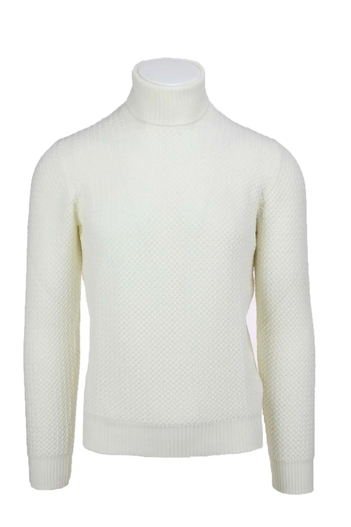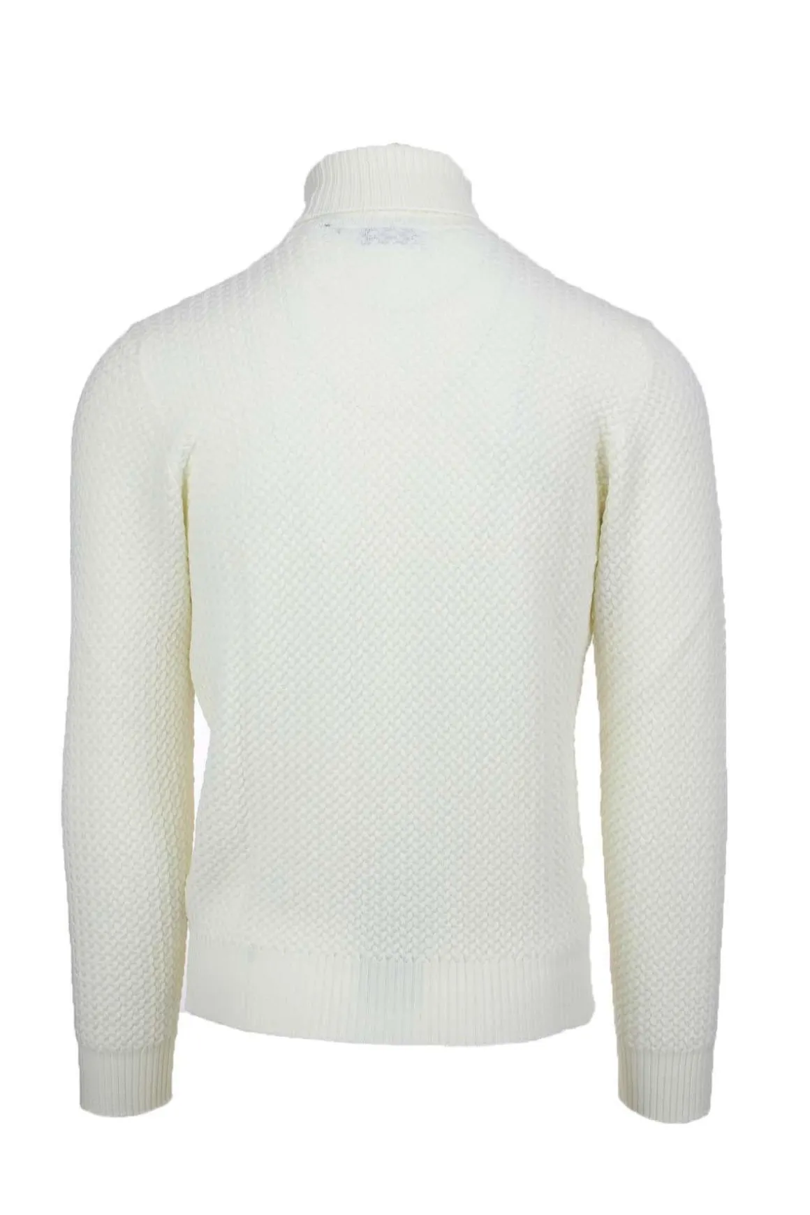 Maglia dolcevita uomo Gransasso, lavorazione a disegno microtrecce a rilievo, polsini e fondo elasticizzati, vestibilità slim fit, 100% lana merinos extrafine, Made in Italy.