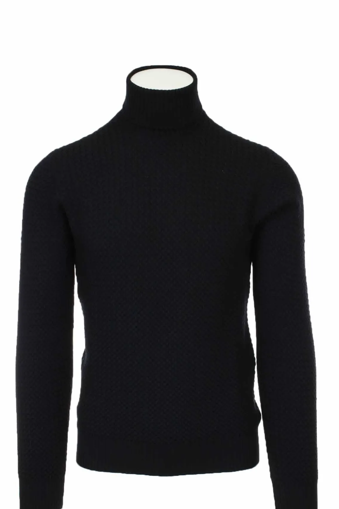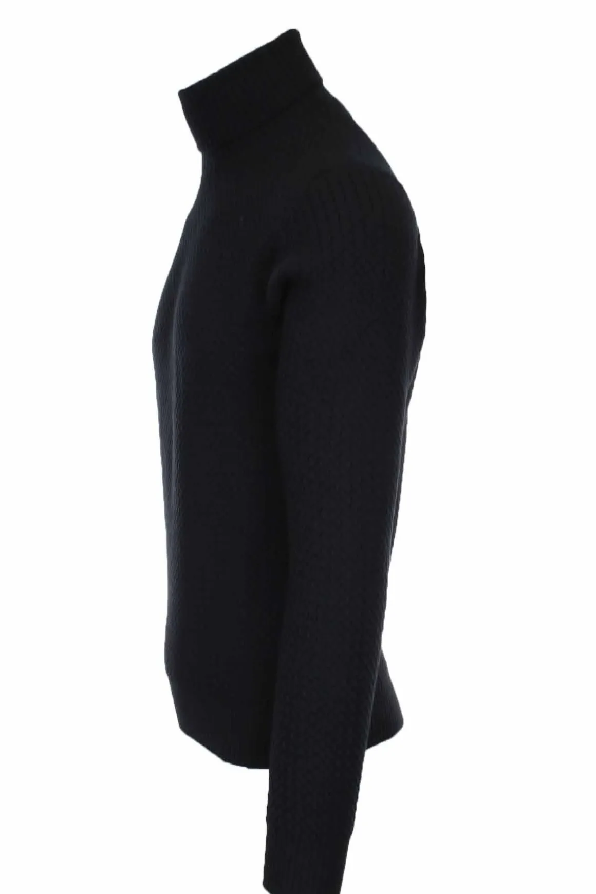 Maglia dolcevita uomo Gransasso, lavorazione a disegno microtrecce a rilievo, polsini e fondo elasticizzati, vestibilità slim fit, 100% lana merinos extrafine, Made in Italy.