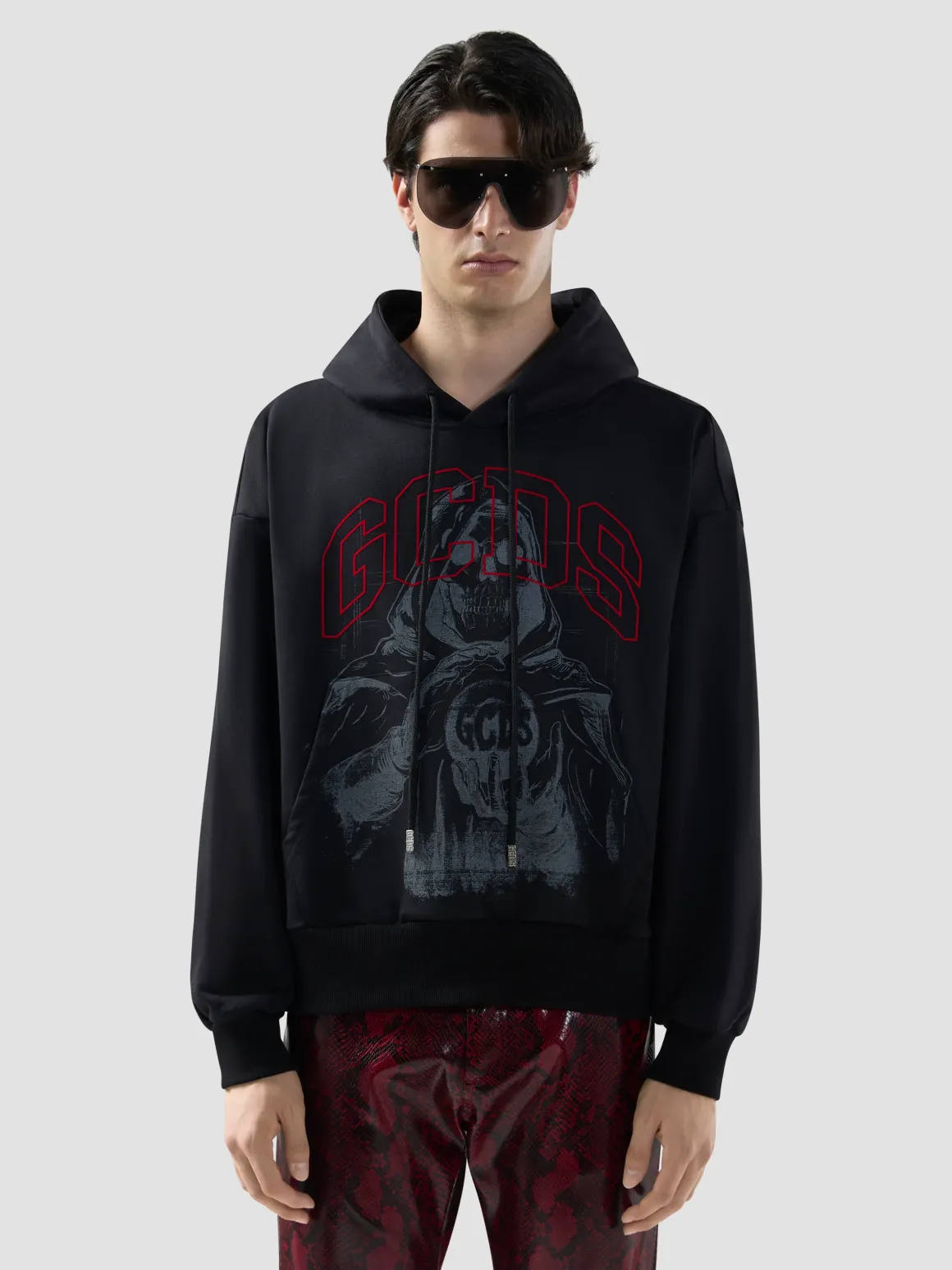 Felpa con cappuccio, particolare stampa gotica sul davanti con scritta GCDS in contrasto, tasca anteriore a marsupio, fondo e polsini a costina elastica, vestibilità regolare, 100% cotone felpa.
