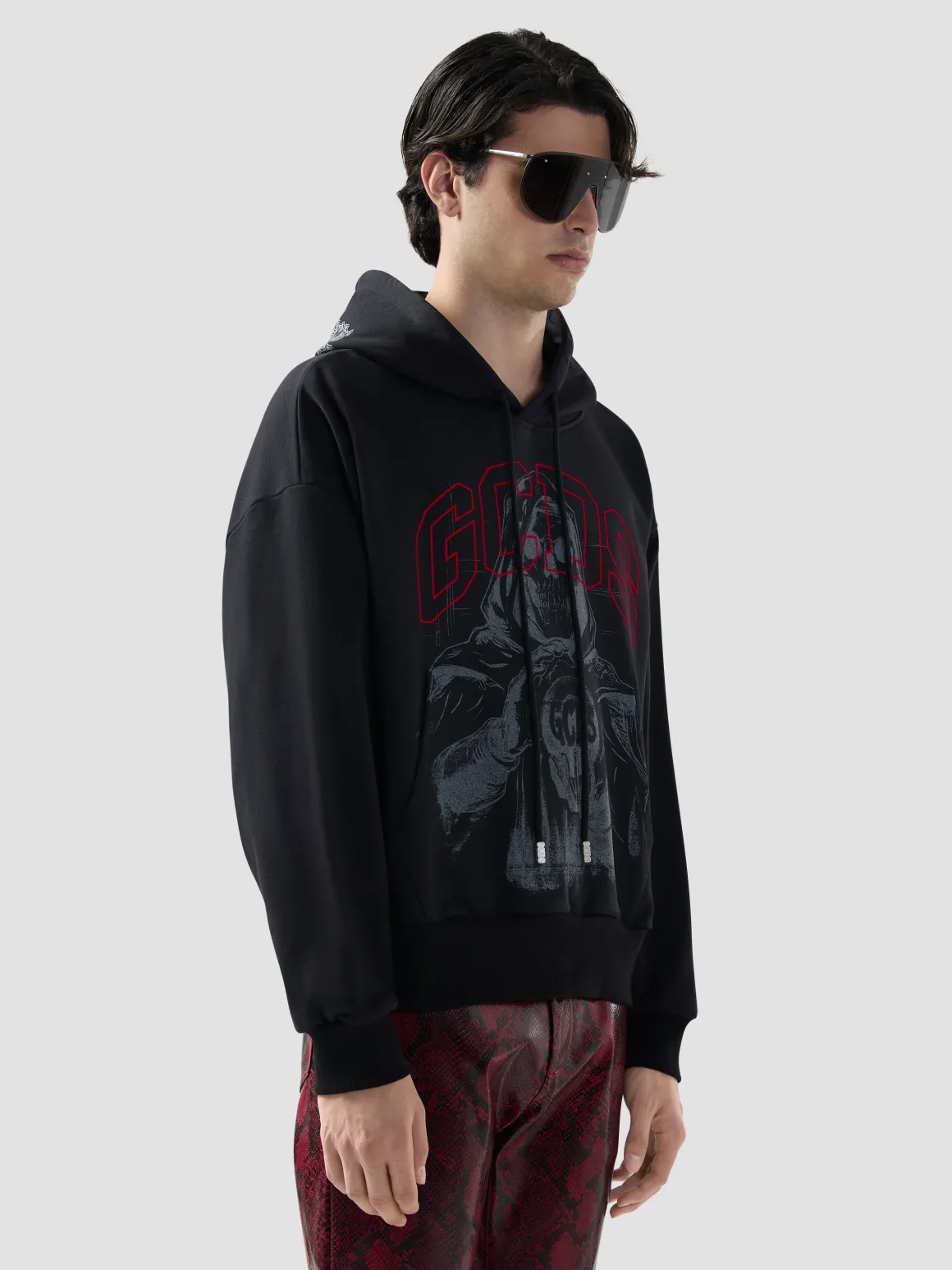 Felpa con cappuccio e stampa gotica