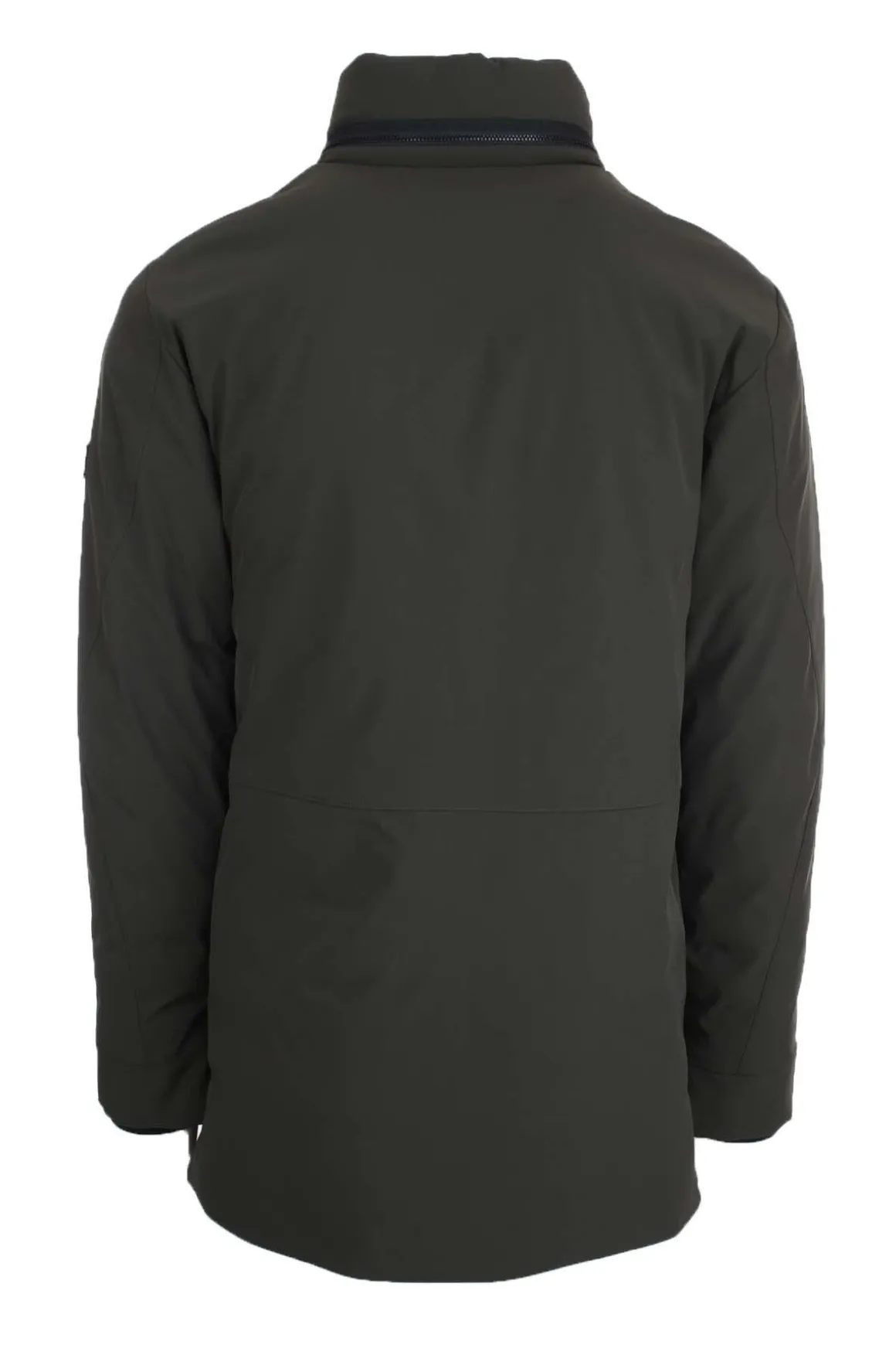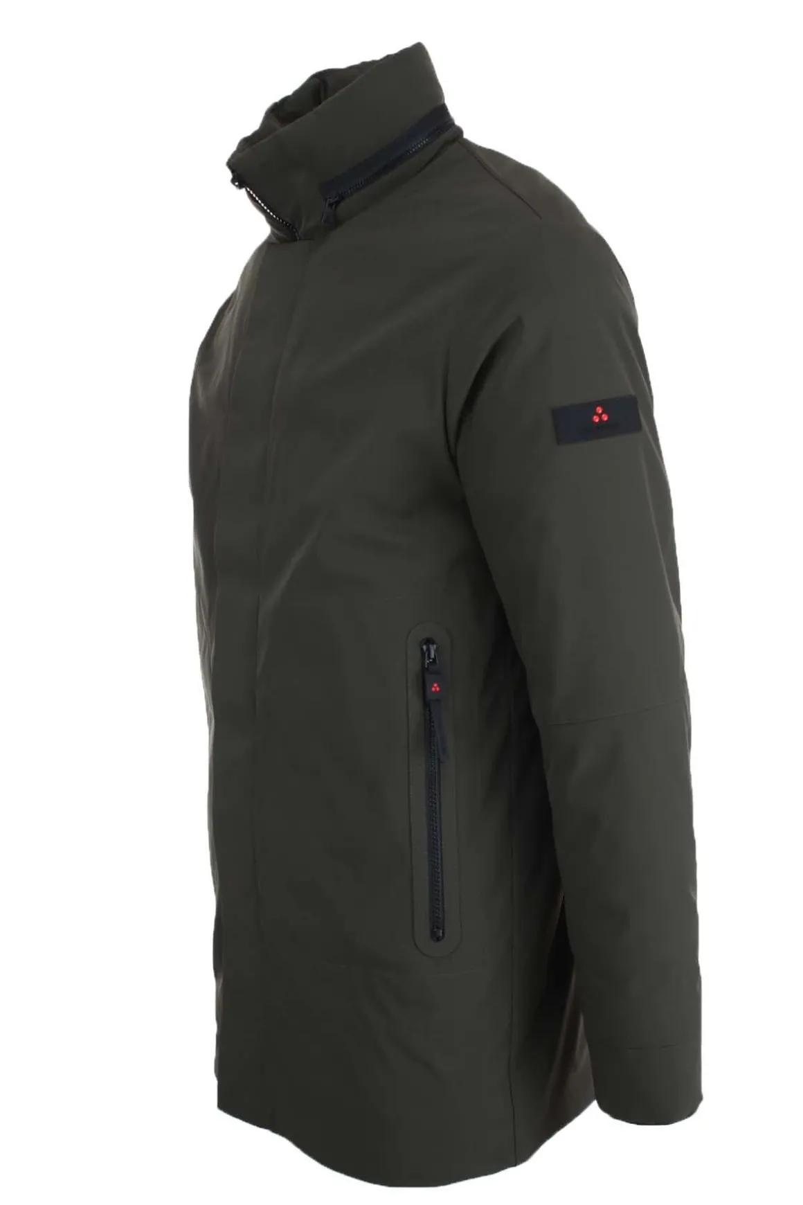 Giacca caban modello Peebles Peuterey, realizzato in morbido tessuto tecnico stretch, cappuccio a scomparsa riposto all’interno del collo, l’imbottitura in thermoplune garantisce al capo un ottimo isolamento dal freddo e dall’umidità pur rimanendo leggero e morbido, la chiusura centrale è garantita da una zip coperta da pattina e bottoni automatici, due tasche anteriori ai fianchi con zip, logo sul braccio, interno trapuntato con tasche di servizio. Vestibilità regolare comoda.