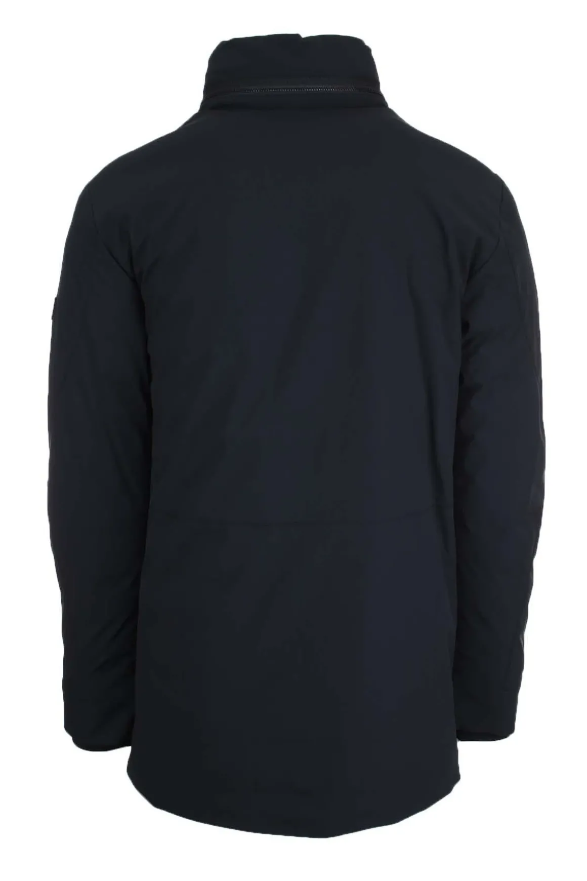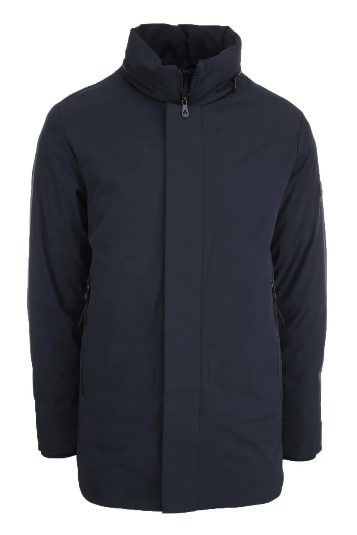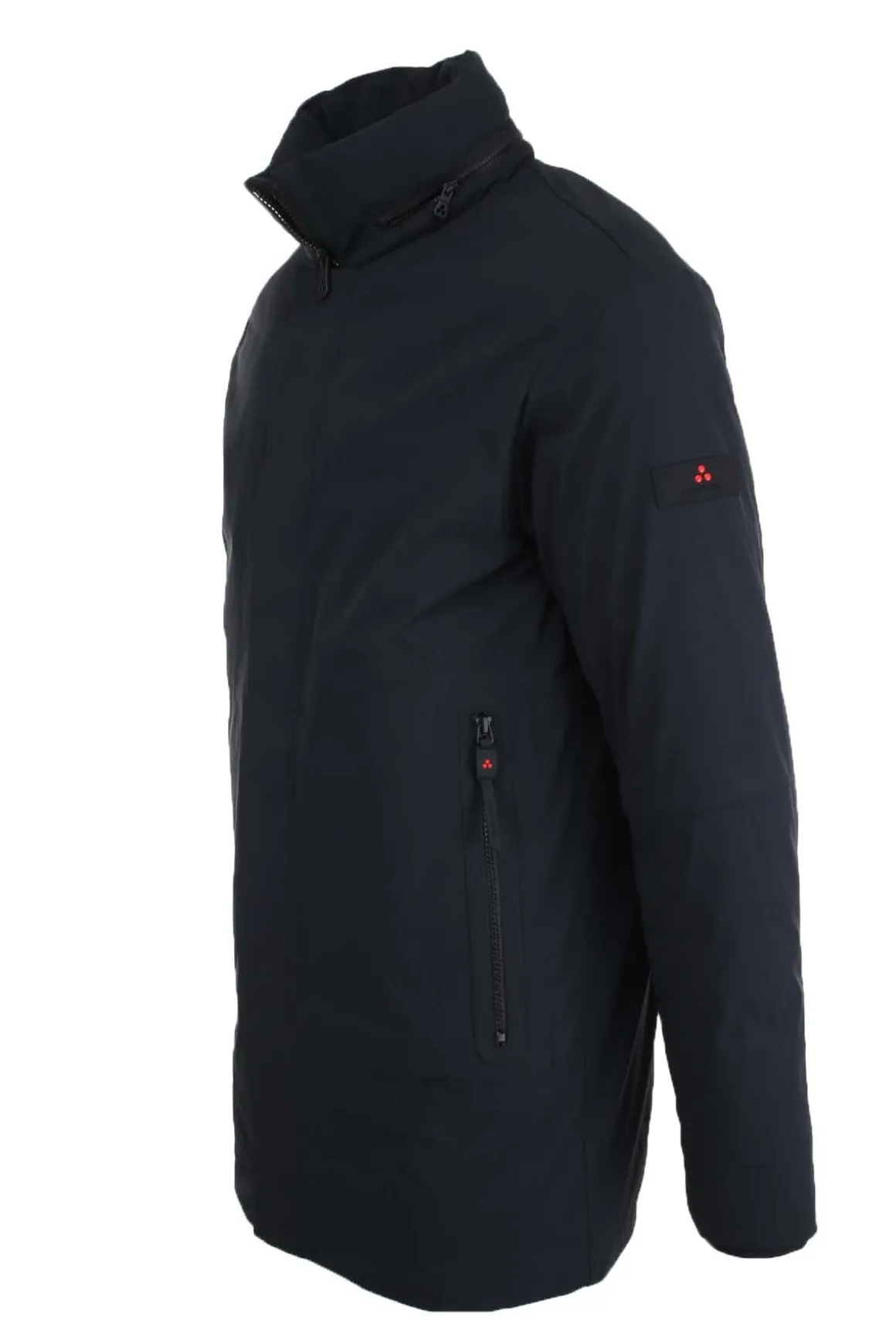 Giacca caban modello Peebles Peuterey, realizzato in morbido tessuto tecnico stretch, cappuccio a scomparsa riposto all’interno del collo, l’imbottitura in thermoplune garantisce al capo un ottimo isolamento dal freddo e dall’umidità pur rimanendo leggero e morbido, la chiusura centrale è garantita da una zip coperta da pattina e bottoni automatici, due tasche anteriori ai fianchi con zip, logo sul braccio, interno trapuntato con tasche di servizio. Vestibilità regolare comoda.