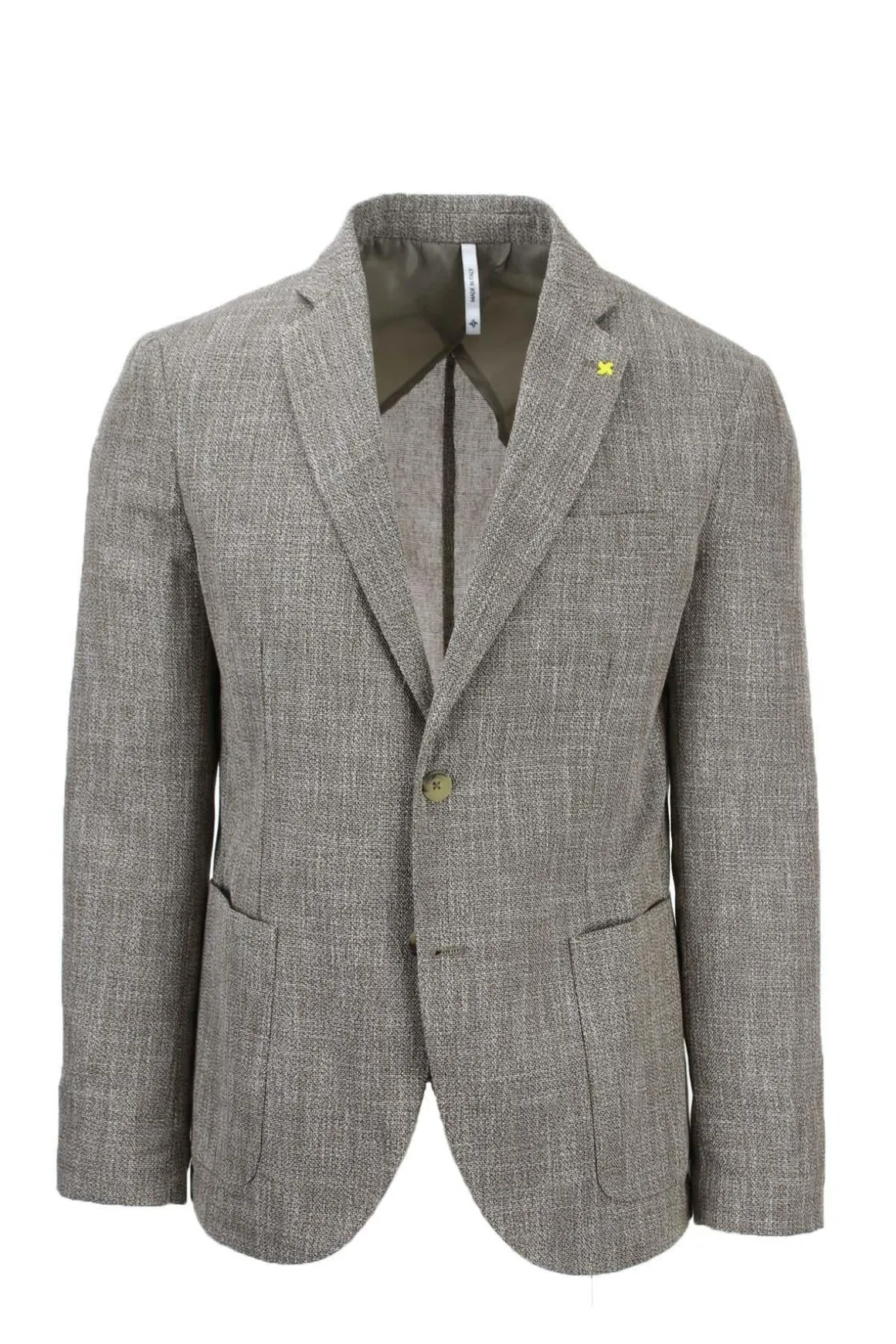 Giacca monopetto 2 bottoni con spacchetti laterali, realizzata in misto cotone leggero, effetto garzato, tasche anteriori applicate, interno sfoderato con tasche, vestibilità regolare, ideale per un look sportivo elegante, 65% poliestere, 35% cotone.