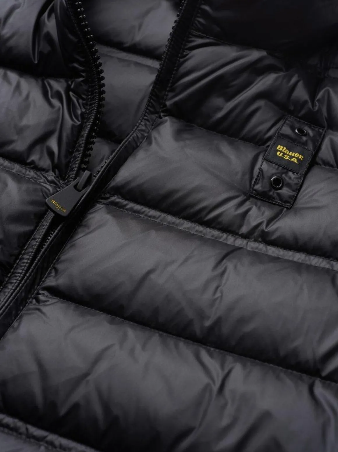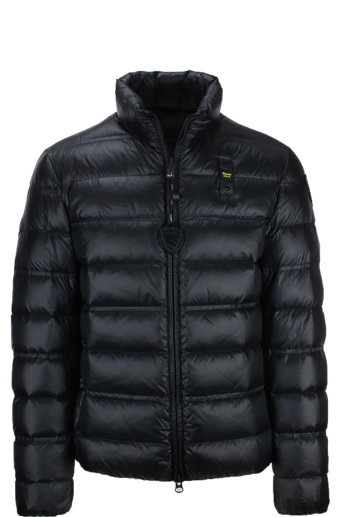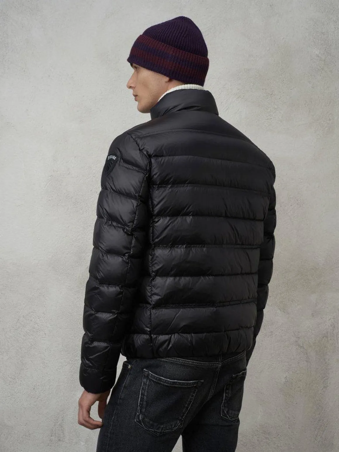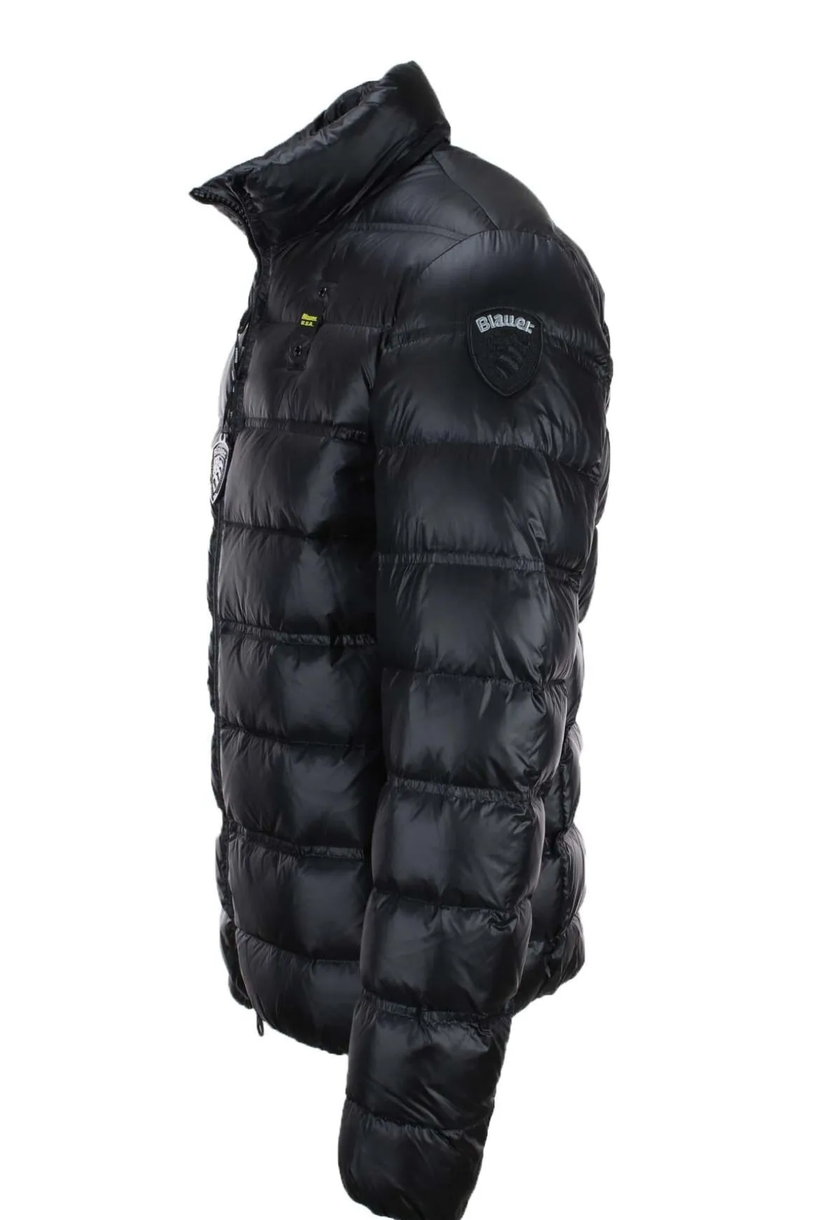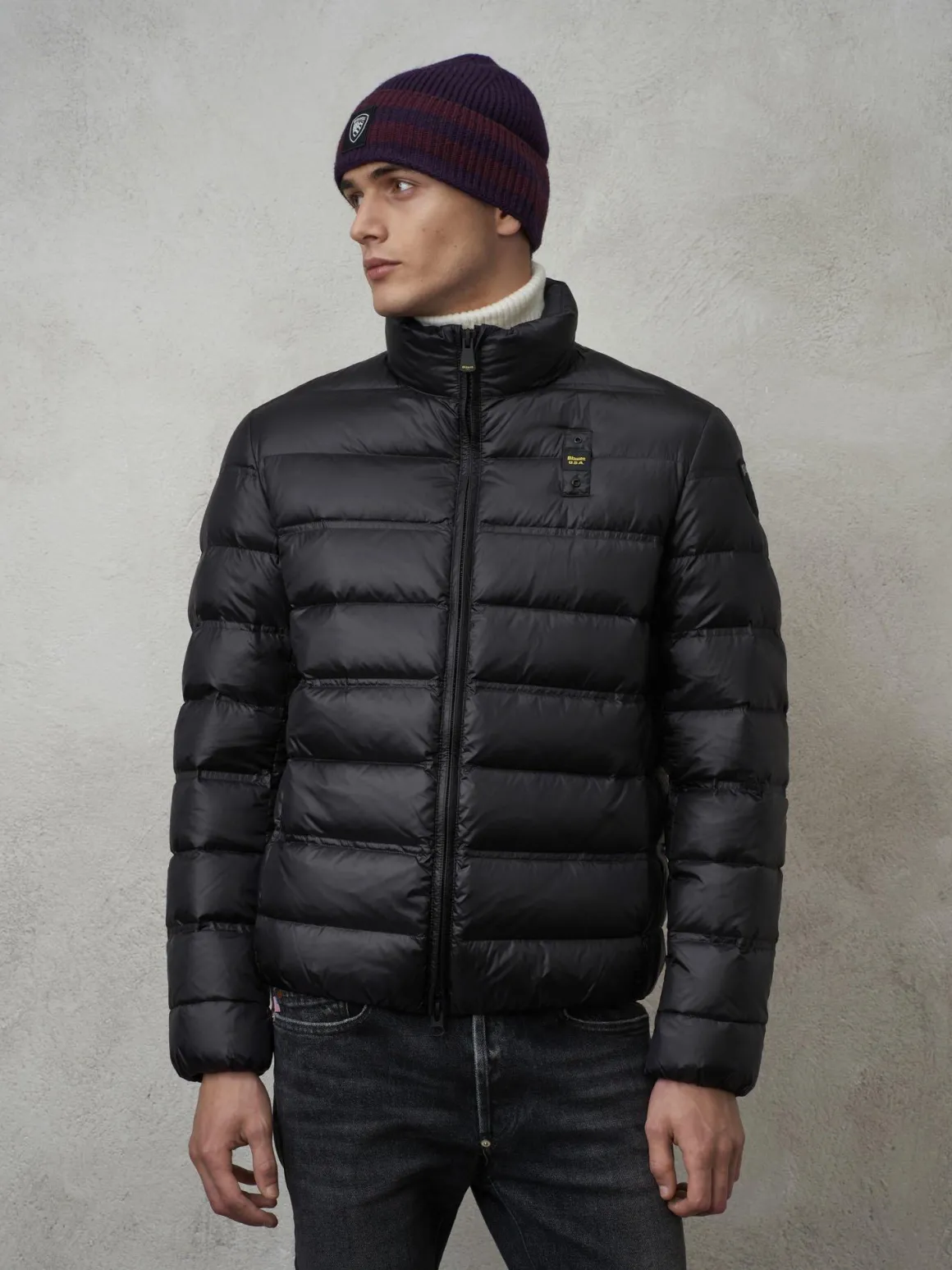 La giacca piumino uomo Blauer con collo alla coreana BELMONT ha una chiusura centrale con zip doppio cusore, tasche anteriori oblique con zip a scomparsa, logo passante Blauer sul petto e patch in tinta sul braccio, elastico interno in vita e nei polsini per una migliore vestibilità, interno con tasche, imbottitura in 90% piuma d’anatra bianca 10% piuma 185gr., tessuto 100% nylon.
